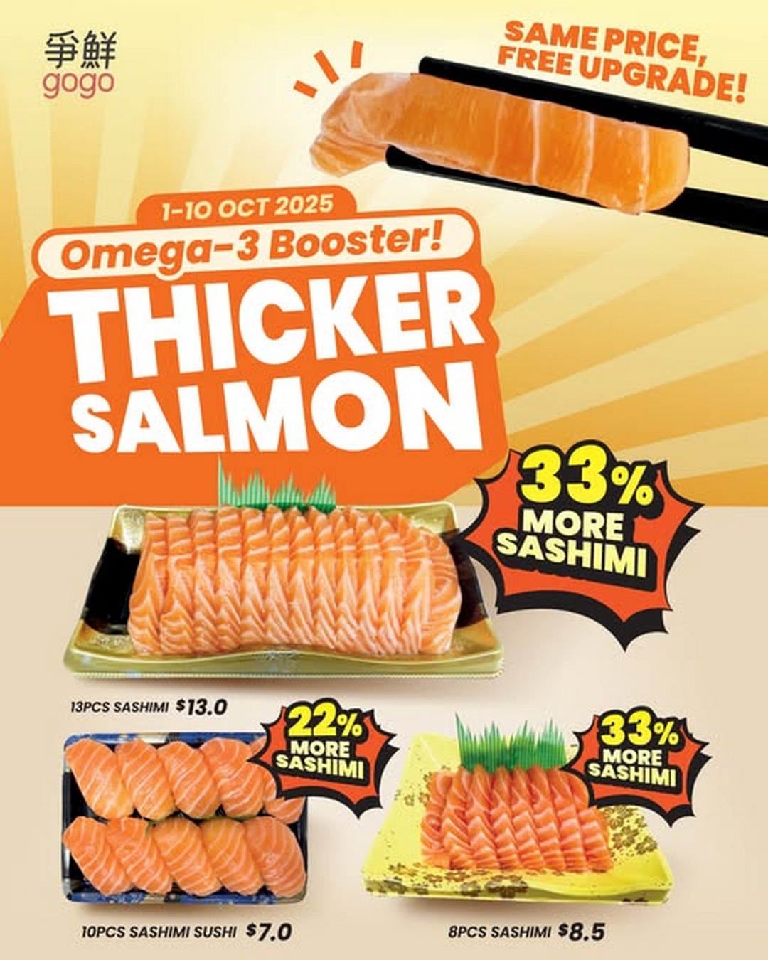 Singaporeans who enjoy salmon should mark their calendars for 1–10 October 2025 and head to the nearest GOGO Sushi outlet. With prices starting from as low as $7, thicker salmon cuts included at no extra cost, and the chance to explore more perks via the Sushi Express app, this is the kind of promotion that delivers value on multiple levels.