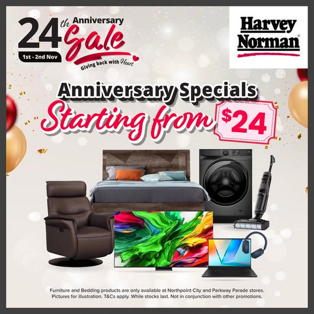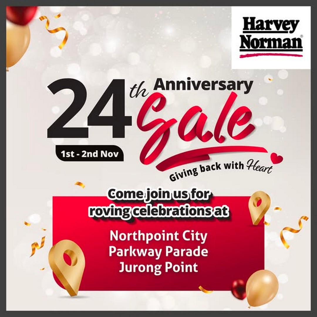 If there’s one thing Singapore shoppers adore, it’s a good bargain—and Harvey Norman knows exactly how to keep that excitement alive. For those who might have missed their grand 24th Anniversary Celebration last weekend, there’s no reason to feel left out. The celebration continues with another thrilling round of anniversary specials happening exclusively at Jurong Point, Northpoint City, and Parkway Parade on 1 and 2 November 2025.