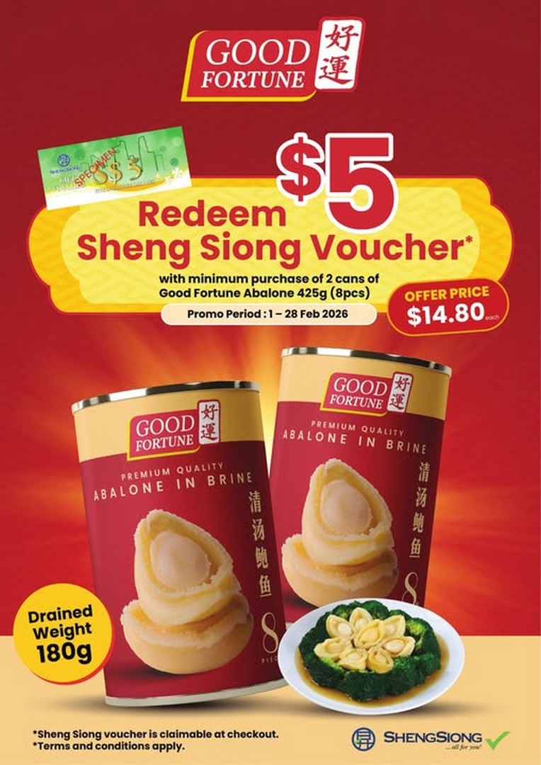 In conclusion, this February, shoppers have a unique chance to enjoy a high-quality, culturally significant ingredient at an exceptional value. With the $14.80 price point per can, the $5 voucher redemption for a minimum purchase of two cans, and the extended promotion period running from 1 to 28 February 2026, Sheng Siong makes it easier than ever to bring abundance, flavour, and festivity into your home. Don’t miss out on this opportunity to elevate your Chinese New Year celebrations with Good Fortune Abalone — a small investment that delivers both culinary delight and symbolic richness.