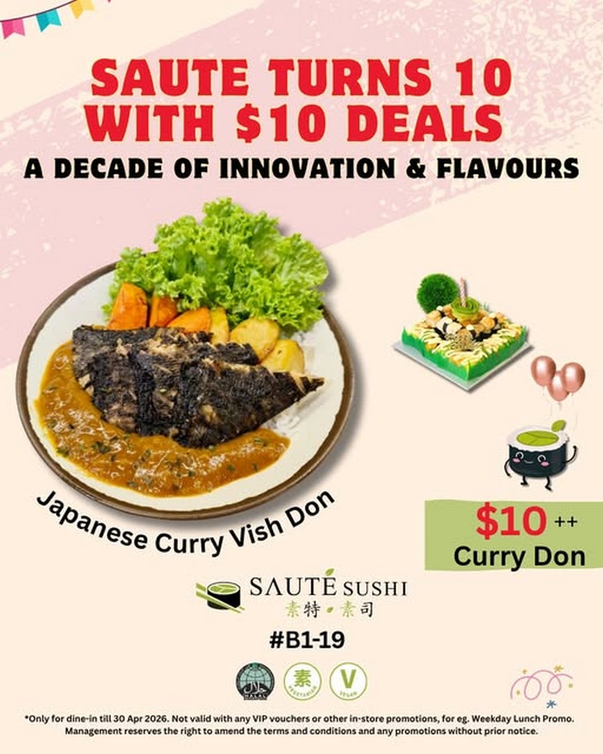 Don’t miss out on this chance to experience one of Singapore’s favourite Japanese dishes at a price that makes it irresistible. Mark your calendar, gather your friends, and head to Paya Lebar Square to enjoy Saute Sushi’s 10th Anniversary Japanese Curry Fish Don promotion. With the clock ticking down to 30 April 2026, there’s no reason to delay – your taste buds will thank you.