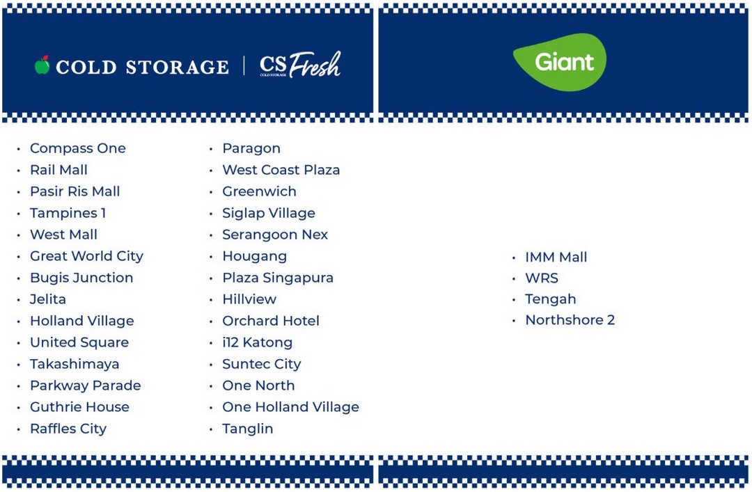 Cold Storage & CS Fresh: 28 selected outlets across Singapore