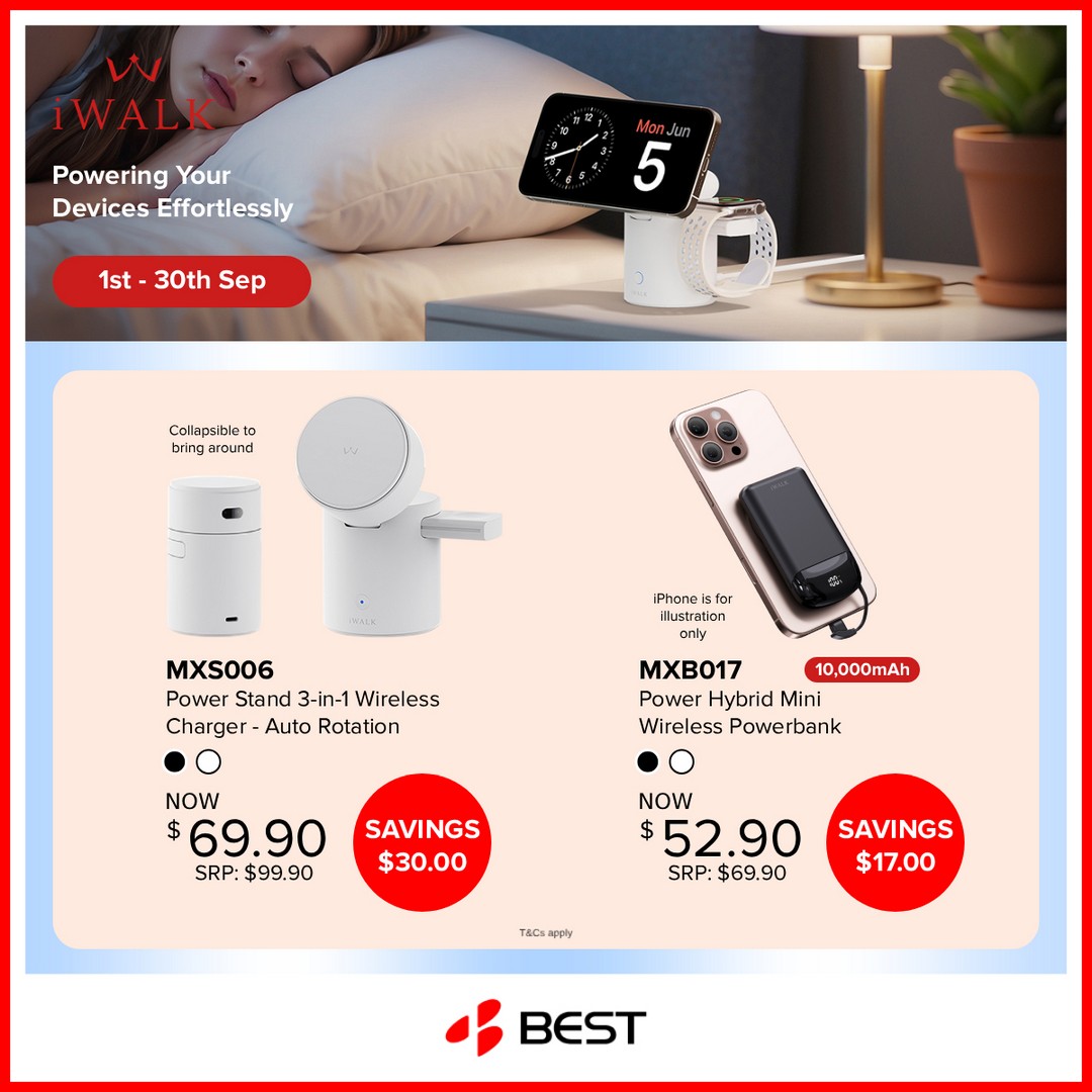 The iWALK Power Up Deals are available at all BEST Denki outlets across Singapore. No matter where you’re located, chances are there’s a store within convenient reach. To check more details or confirm the promotion, you can also visit the official source here: BEST Denki Facebook Post.