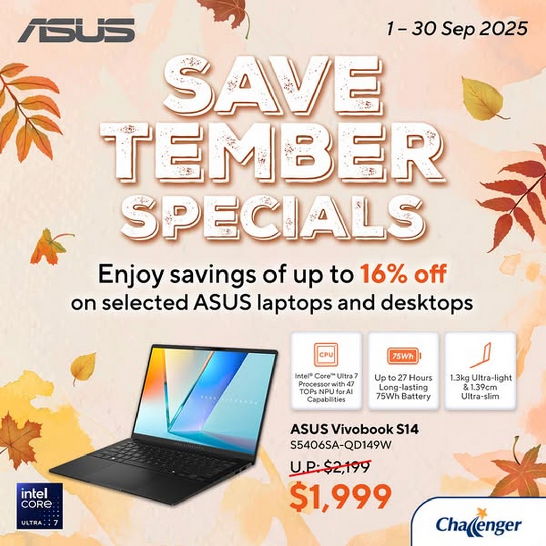 For tech enthusiasts, students, or professionals looking to upgrade their computing experience, Challenger Singapore has something special lined up this September. From 1st to 30th September 2025, they are offering massive savings of up to $200 on selected ASUS laptops and desktops. This promotion provides a perfect opportunity for anyone who has been holding back on buying a new device, whether it’s for work, study, or entertainment.