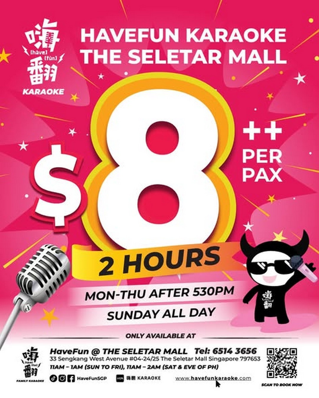 Booking: Call 6514 3656 or scan QR to book