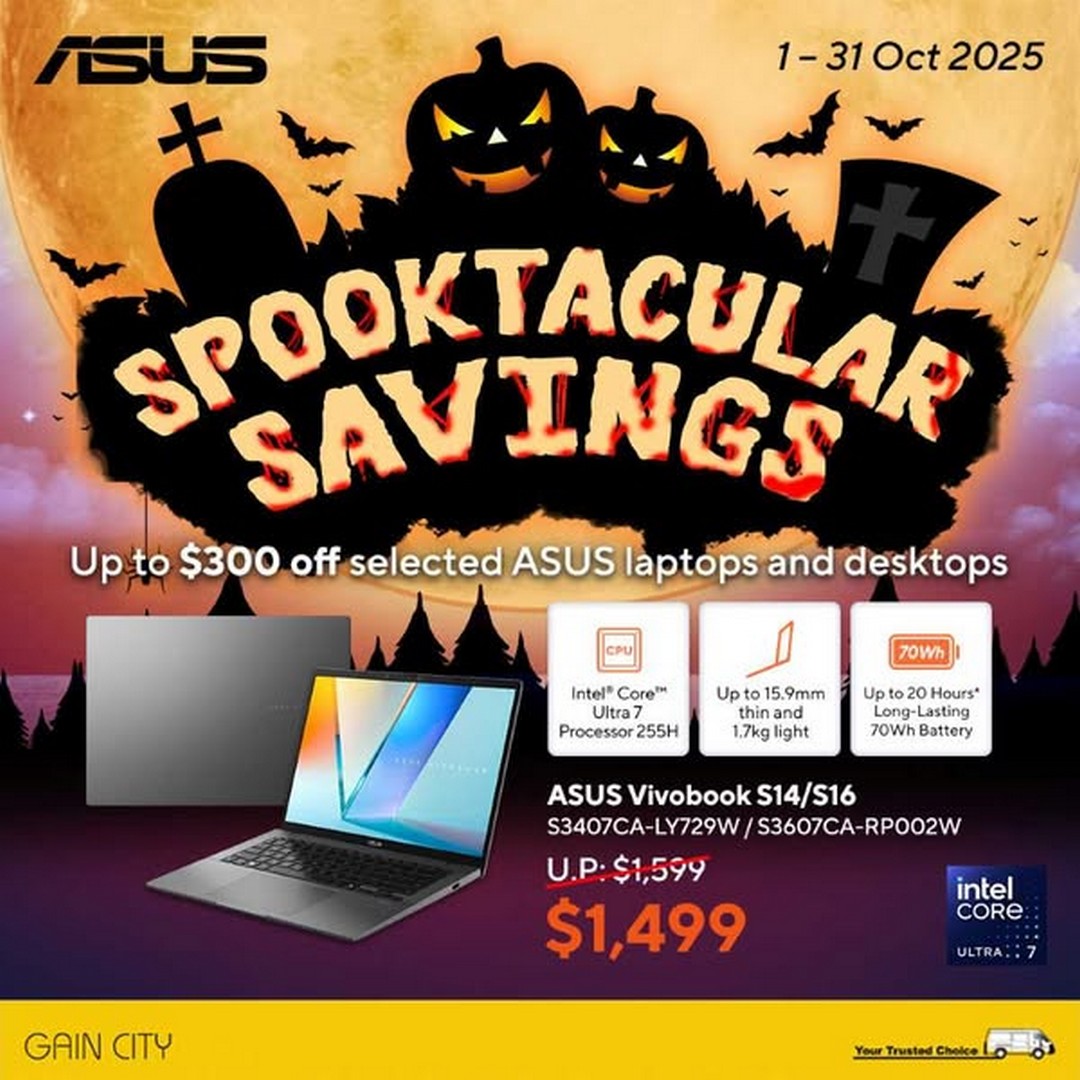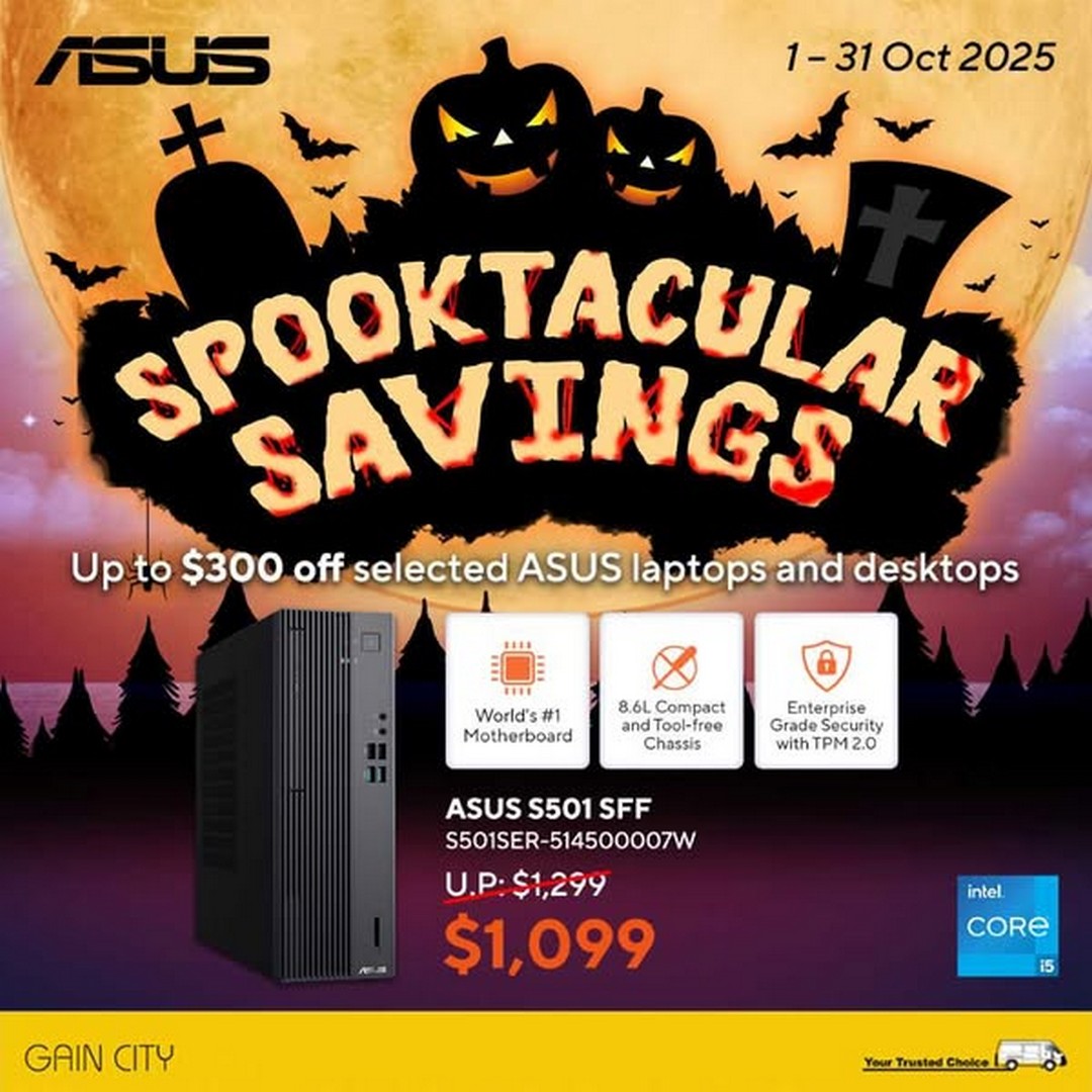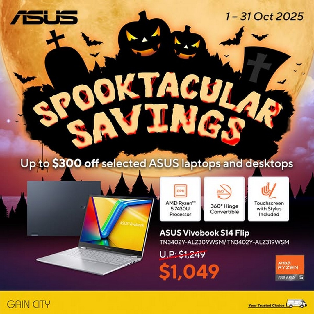 Halloween is just around the corner, and for gaming enthusiasts in Singapore, Gain City has cooked up a treat that’s impossible to resist. From 1 – 31 October 2025, gamers can enjoy discounts of up to $900 on selected TUF and ROG gaming laptops and desktops. Whether someone is a casual player looking to upgrade their current setup or a serious gamer aiming to dominate the battlefield, this promotion is an ideal opportunity to level up their gaming station without burning a hole in their wallet.