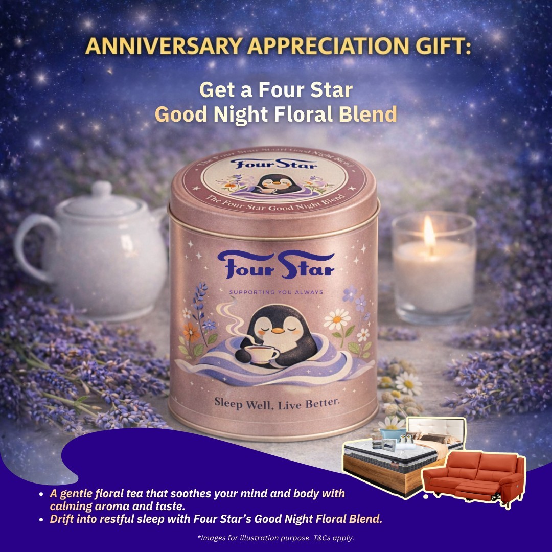 In addition, there is a special anniversary exclusive—customers will receive a limited-edition Four Star Good Night Floral Blend with their purchase. While stocks last, this thoughtful gift adds a celebratory touch to the entire shopping experience.