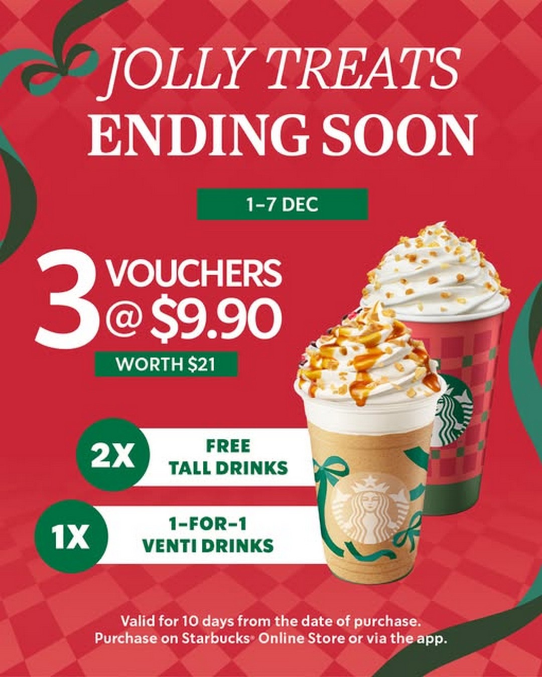 For those who love a good cup of coffee, December just got a little more exciting at Starbucks Singapore. If there’s ever a deal that makes indulging in your favourite drinks guilt-free, this is it. Until 7 December 2025, Starbucks is offering an irresistible promotion that’s bound to make caffeine lovers jump for joy: for just $9.90, them can get not one, not two, but three vouchers that could be worth up to $21.