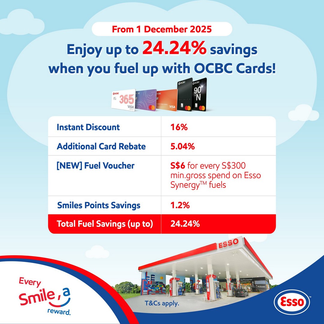 If there’s one thing Singaporeans know, it’s that every drop of fuel counts – not just for your vehicle but for your wallet too. For those who drive regularly, fuel expenses can add up quickly, which is why the latest promotion from Esso Singapore is such a fantastic opportunity. From 1 December 2025 onwards, OCBC cardholders can enjoy fuel savings of up to 24.24% when they fill up with Esso Synergy™ fuels. It’s one of those rare deals that combines multiple layers of discounts, rebates, and rewards to make your fuel top-up feel more like a treat than a chore.
