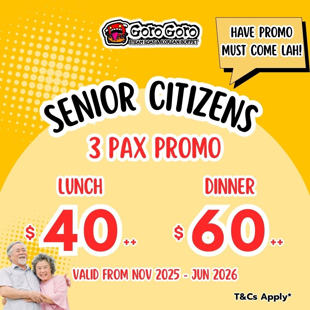 Finding a great place to enjoy a hearty meal with loved ones doesn’t have to be complicated, especially when there are promotions that make it easy on the wallet. For seniors and families who love Korean cuisine and steamboat experiences, GoroGoro Steamboat & Korean Buffet has something special lined up. From 1 November 2025 until 30 June 2026, they are offering a Seniors Promo that allows three people to dine together for an incredible value – starting from just $40++ for lunch and $60++ for dinner.