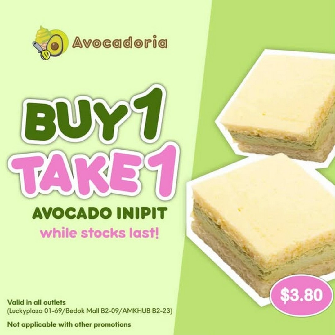 This accessibility is part of what makes this deal attractive. You can be in the east, the north, or the heart of town, and still grab the Avocado Inipit Sponge Cake under the Buy 1 Take 1 deal.