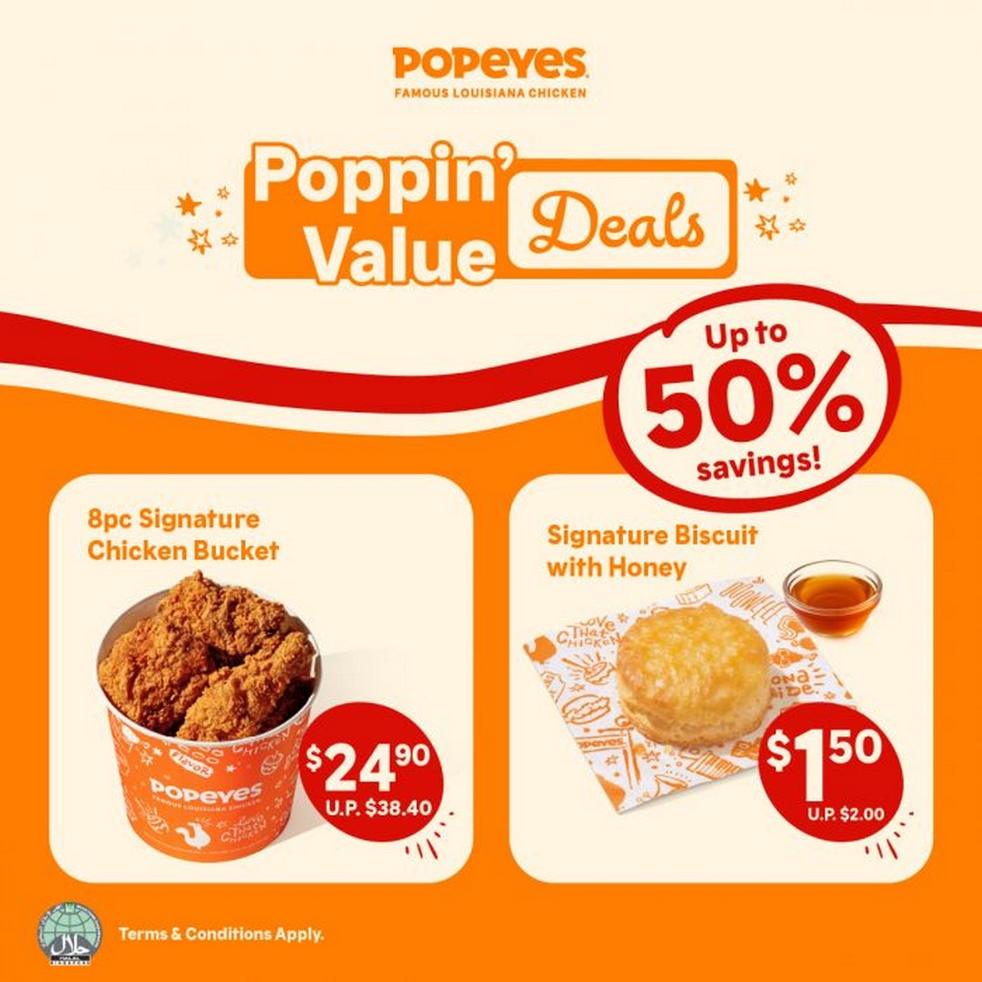 In summary, Popeyes’ October Poppin’ Value Deals are more than just a promotion — they’re an invitation to savour some of Singapore’s favourite fried chicken meals at unbeatable prices. Whether dining alone, with a friend, or with family, these offers make it easy to enjoy tasty, high-quality food without overspending. With deals ranging from individual meals to family buckets, and sides to sweet biscuits, Popeyes ensures that every diner leaves satisfied.