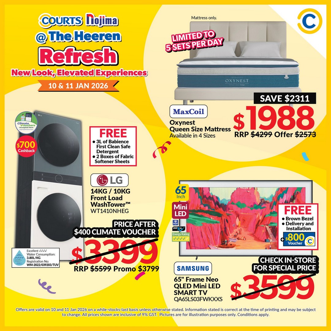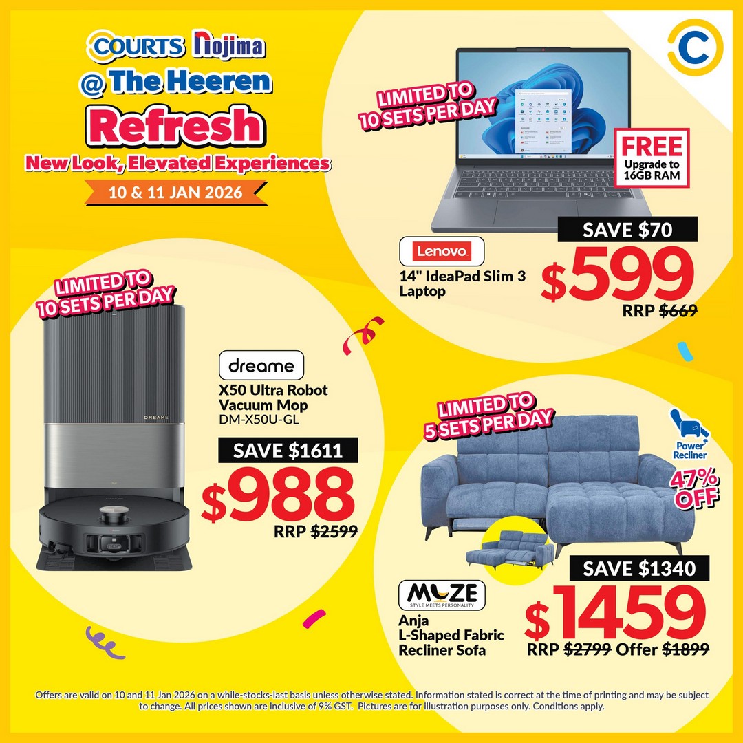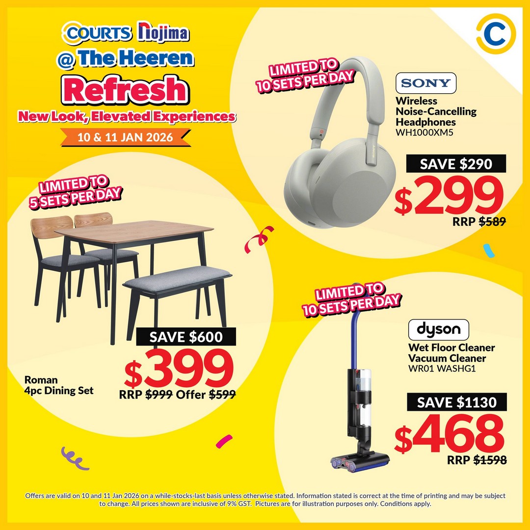 So mark your calendars for 10–11 and 17–18 January 2026 and head down to COURTS Nojima at The Heeren. Arrive early to make the most of the exclusive deals and enjoy a shopping weekend that promises both savings and enjoyment. With deals starting from $10 and discounts up to 90%, there’s never been a better time to explore what COURTS Nojima has in store.