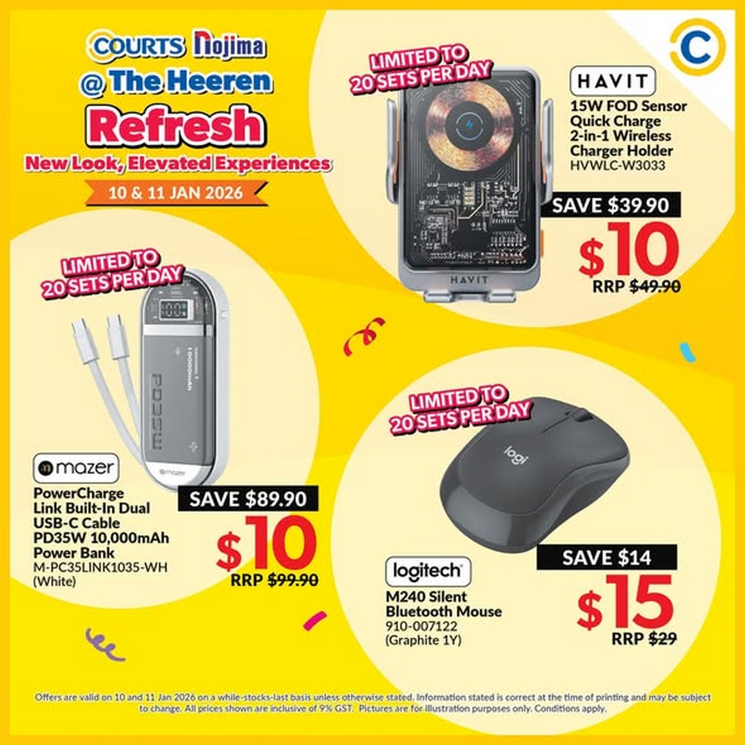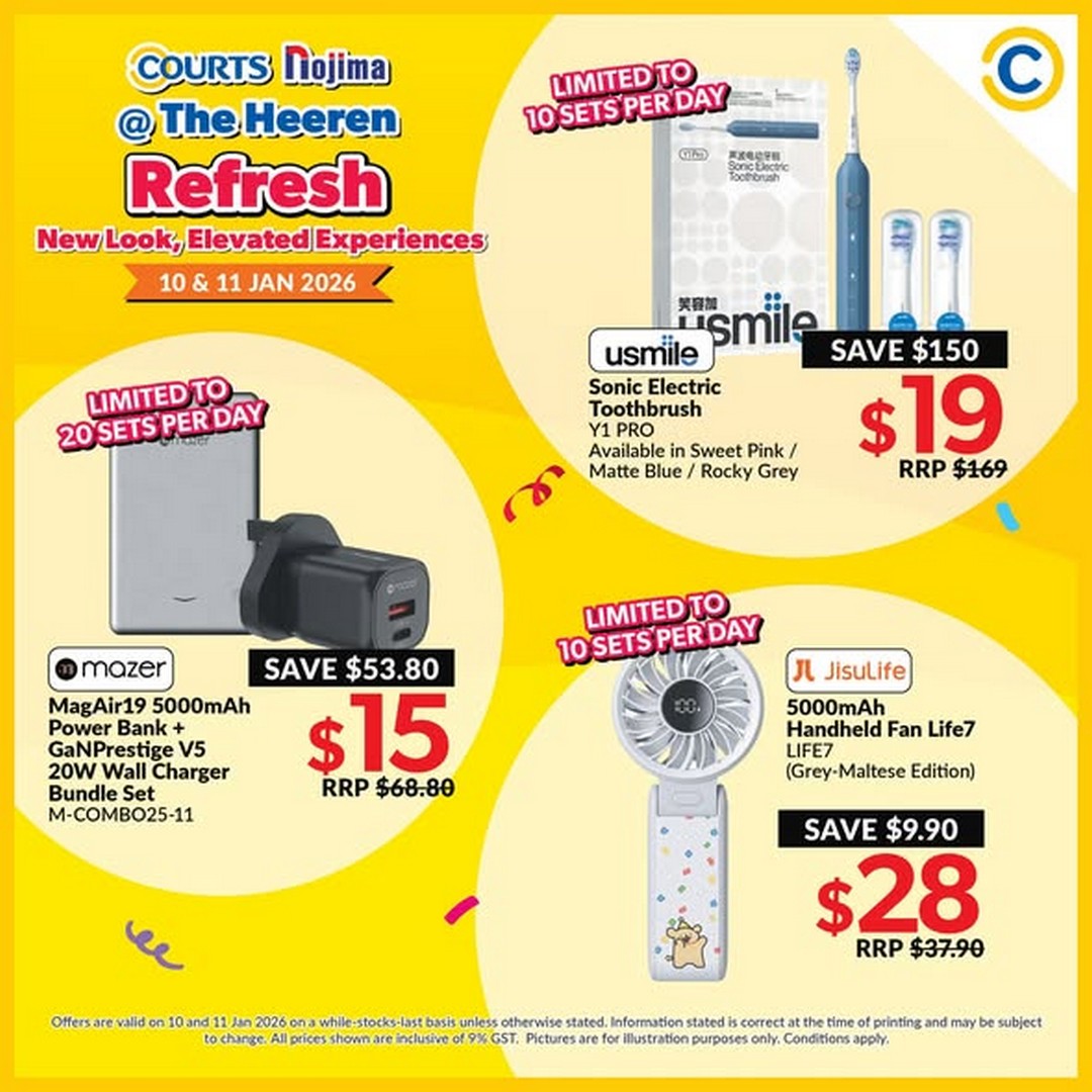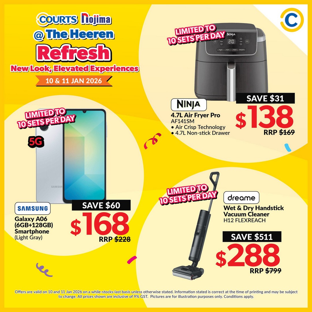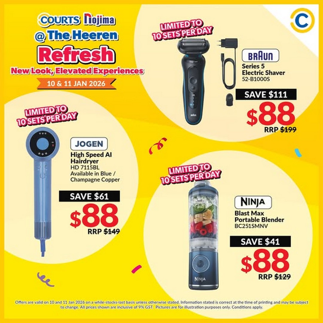 So mark your calendars for 10–11 and 17–18 January 2026 and head down to COURTS Nojima at The Heeren. Arrive early to make the most of the exclusive deals and enjoy a shopping weekend that promises both savings and enjoyment. With deals starting from $10 and discounts up to 90%, there’s never been a better time to explore what COURTS Nojima has in store.