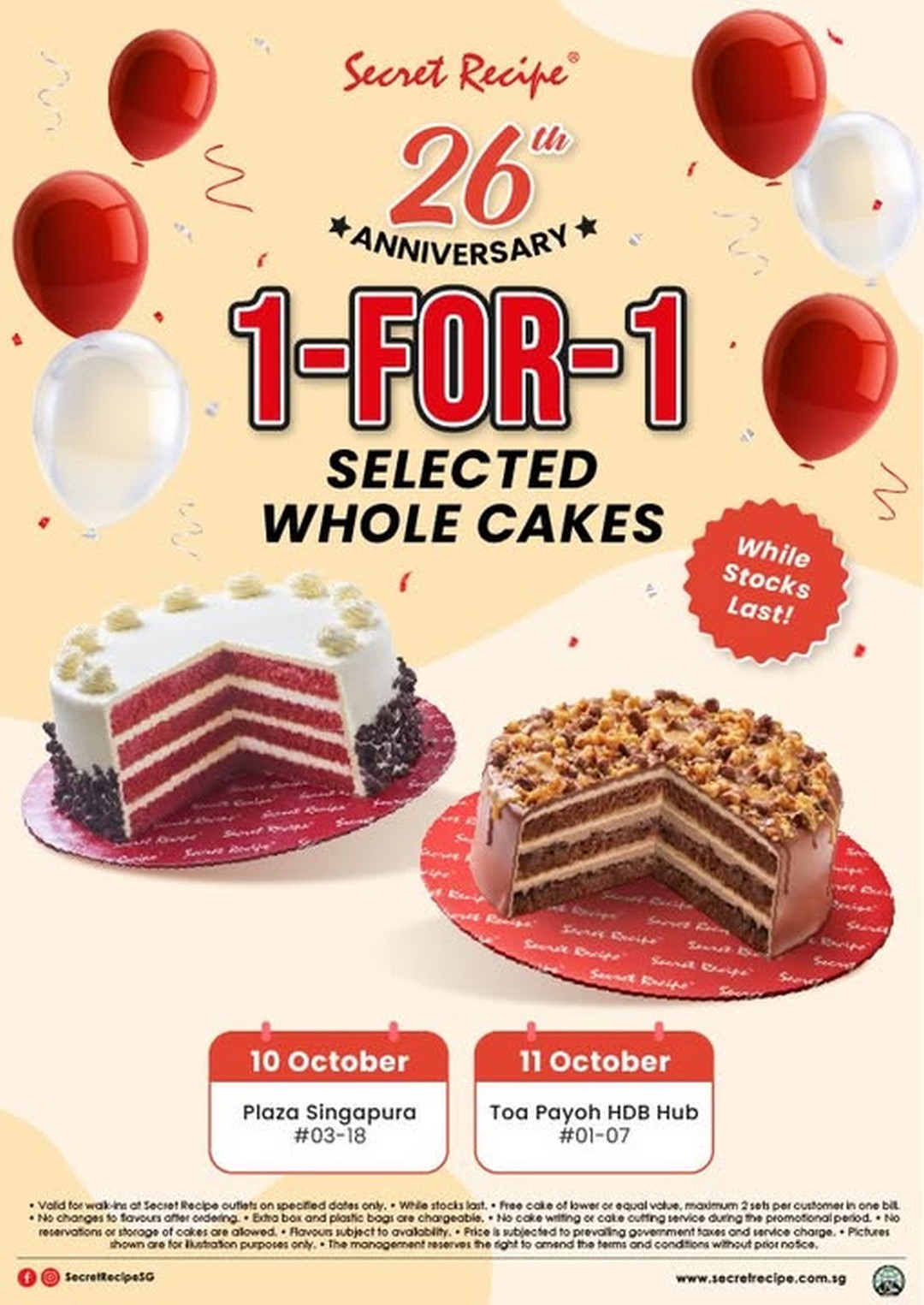 Mark the dates — 10 and 11 October 2025 — and get ready to celebrate with Secret Recipe. Whether you’re a longtime fan or new to their cakes, this is the best time to experience why they remain a beloved name in Singapore’s dessert scene.