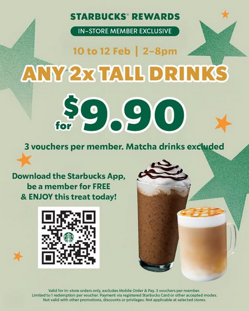 Coffee lovers, it’s time to mark your calendars because Starbucks Singapore is bringing a deal that is too good to miss. From 10 to 12 February 2026, Starbucks® Rewards members can enjoy any two tall drinks for just $9.90. That’s right—double the drinks for an unbeatable price, perfect for those who love a mid-week caffeine fix or a mini coffee outing with a friend.