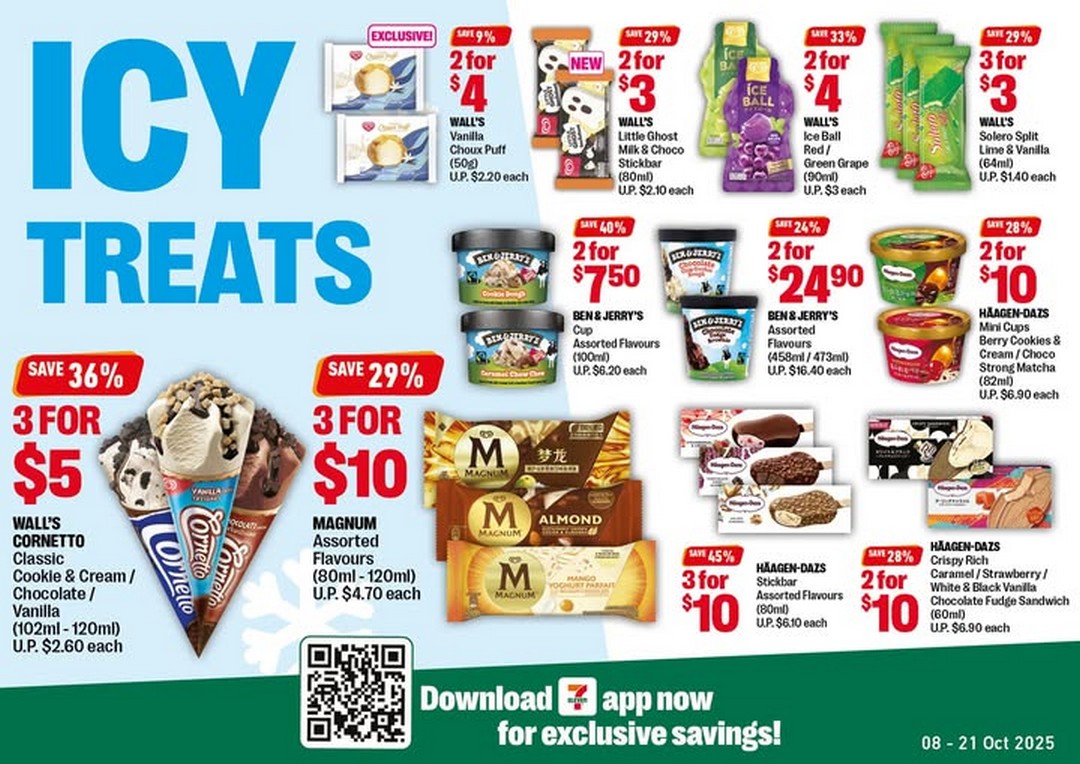 As the weather in Singapore continues to swing between warm and humid, nothing hits the spot quite like a chilled treat. If you’ve been on the lookout for a way to beat the heat without spending a fortune, 7-Eleven Singapore has just the thing. Their latest promotion, running from now until 21 October 2025, brings an exciting range of icy treats that are perfect for cooling down any day of the week. From rich and indulgent ice cream to light, refreshing icy desserts, there is something for everyone — and the best part is that you can pick them up conveniently at your nearest 7-Eleven outlet.