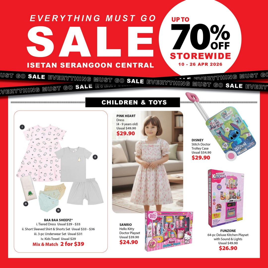 If you’ve been looking for an excuse to refresh your home, wardrobe, or even your toy collection, Isetan Singapore has just made it irresistible. Their Everything Must Go Sale is back, running from 10th to 26th April 2026 at Isetan Serangoon Central, and it promises discounts of up to 70% off. That’s right — from fashion to kitchenware, bedding to toys, shoppers can enjoy huge savings on a wide variety of items.