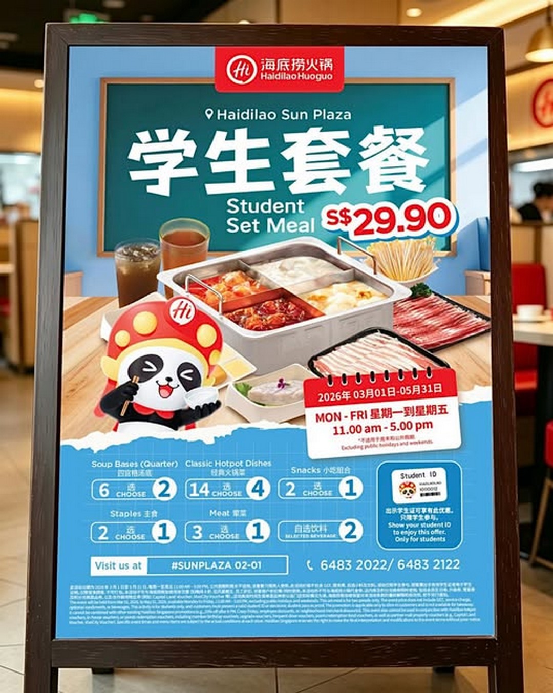 Starting from 10 April 2026 onward, students now have a compelling reason to look forward to their weekday afternoons. Over at Sun Plaza, Haidilao is offering a specially curated student hotpot set from just S$29.90. For a brand known for its premium dining experience, this price point is not just attractive—it is genuinely surprising.
