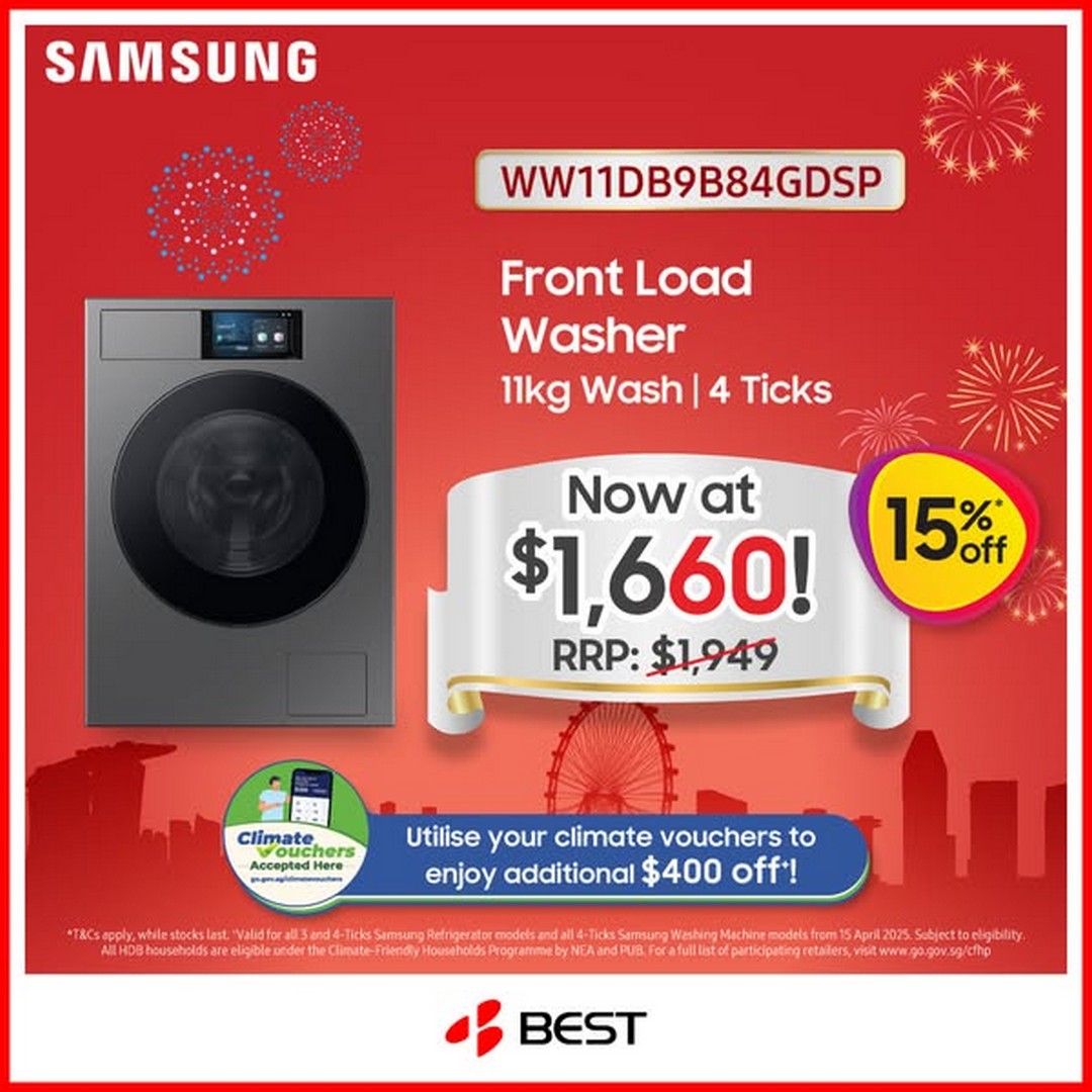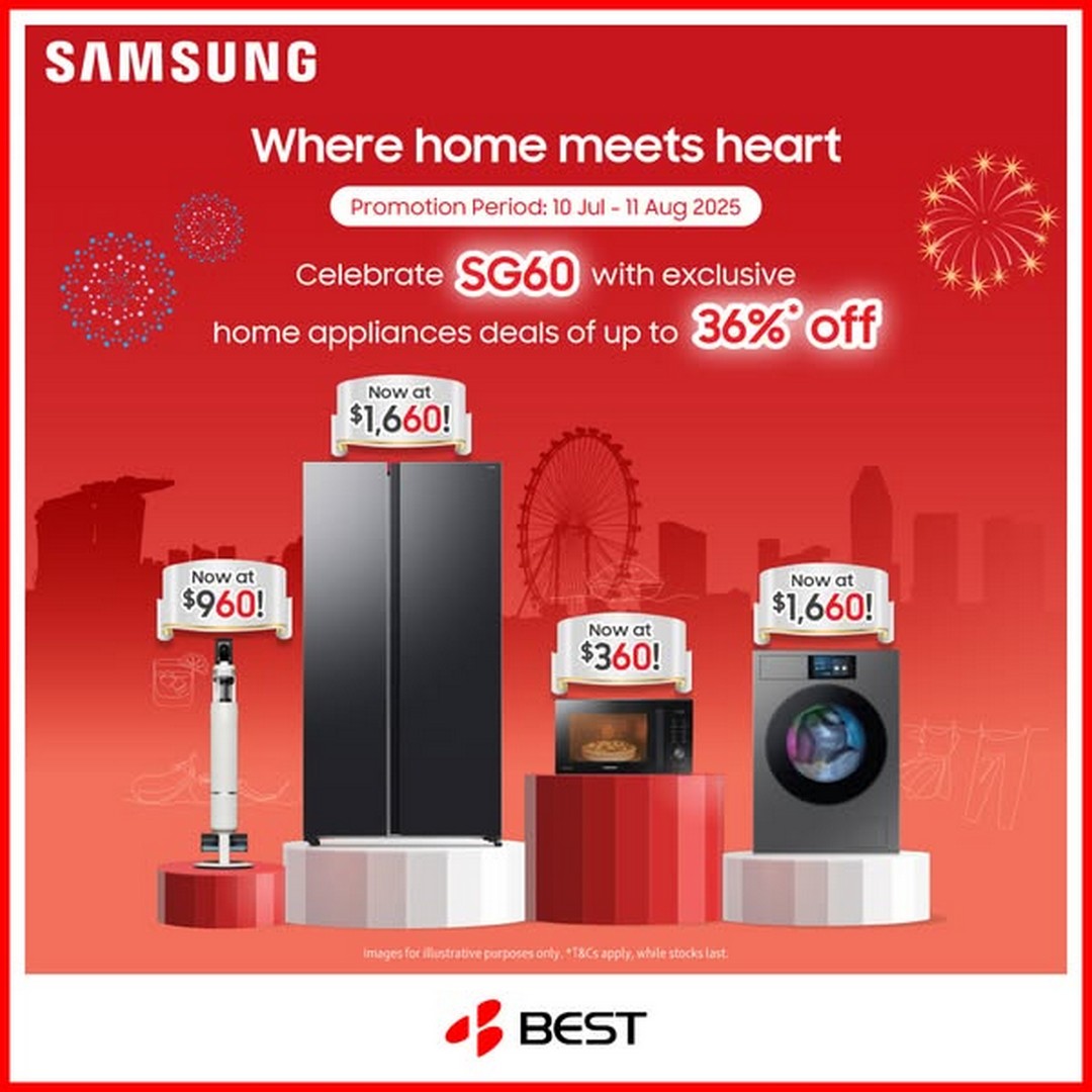 As Singapore turns 60 this National Day, many retailers are rolling out patriotic promotions—but few are doing it on the scale of BEST Denki. Teaming up with Samsung, them are bringing together two powerhouse brands to offer value-packed appliance bundles and significant markdowns across multiple categories.