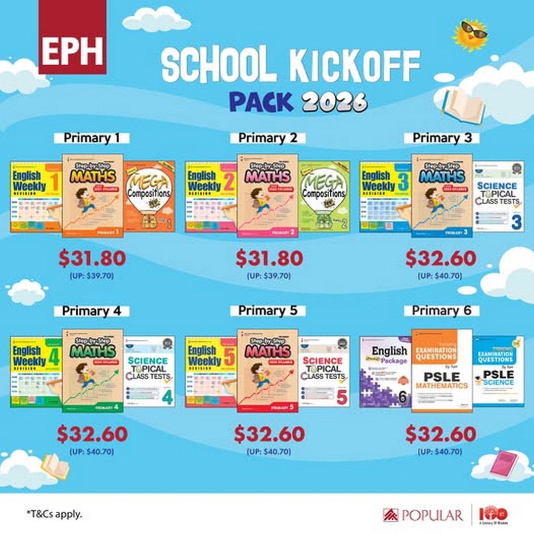 As the year winds down, parents and students across Singapore are already thinking about the next academic year. Preparing early can make a huge difference in setting a child up for success. Popular Bookstore Singapore has just the solution to give pupils a confident start: the EPH School Kickoff Pack 2026. This promotion is particularly aimed at helping students from Primary 1 through Primary 6 hit the ground running in English, Maths, and Science.