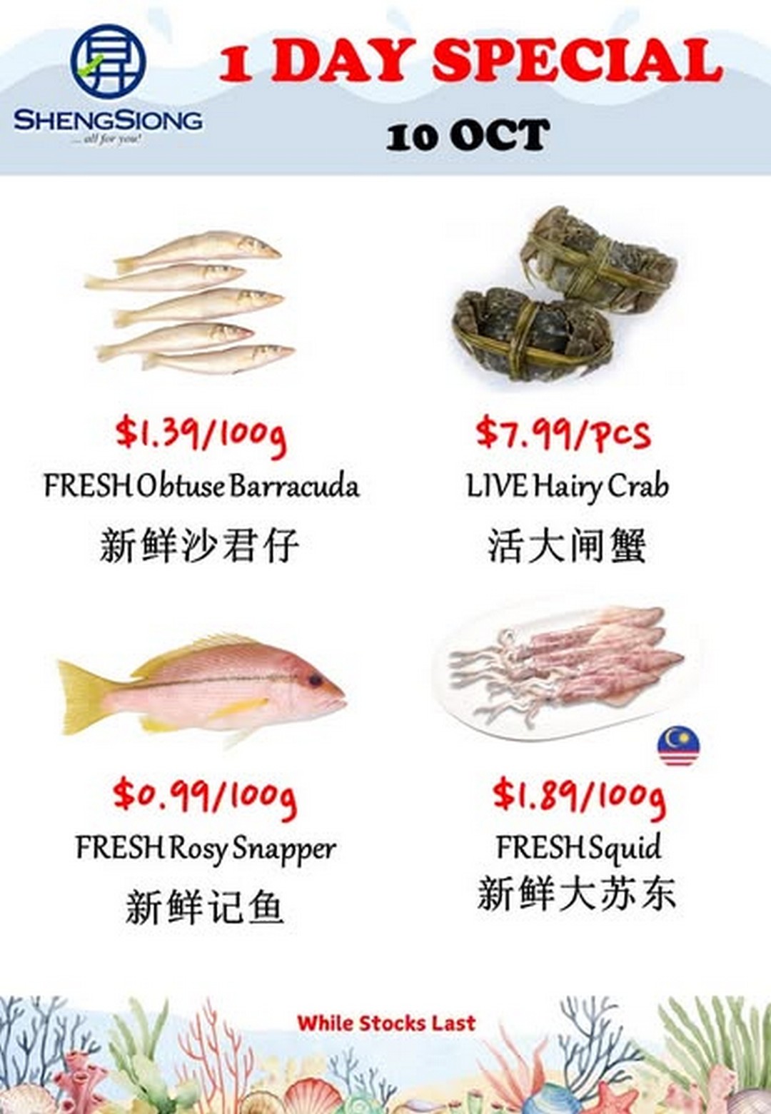 In conclusion, Sheng Siong’s seafood specials for 10 October 2025 are more than just a typical supermarket promotion. They are an invitation to enjoy premium seafood, experience culinary creativity, and benefit from affordability, all under one roof. For anyone passionate about cooking, feeding their family nutritious meals, or simply enjoying the pleasures of fresh seafood, this is an event not to be missed. The combination of freshness, price, and quality creates a compelling reason to head down to Sheng Siong today.