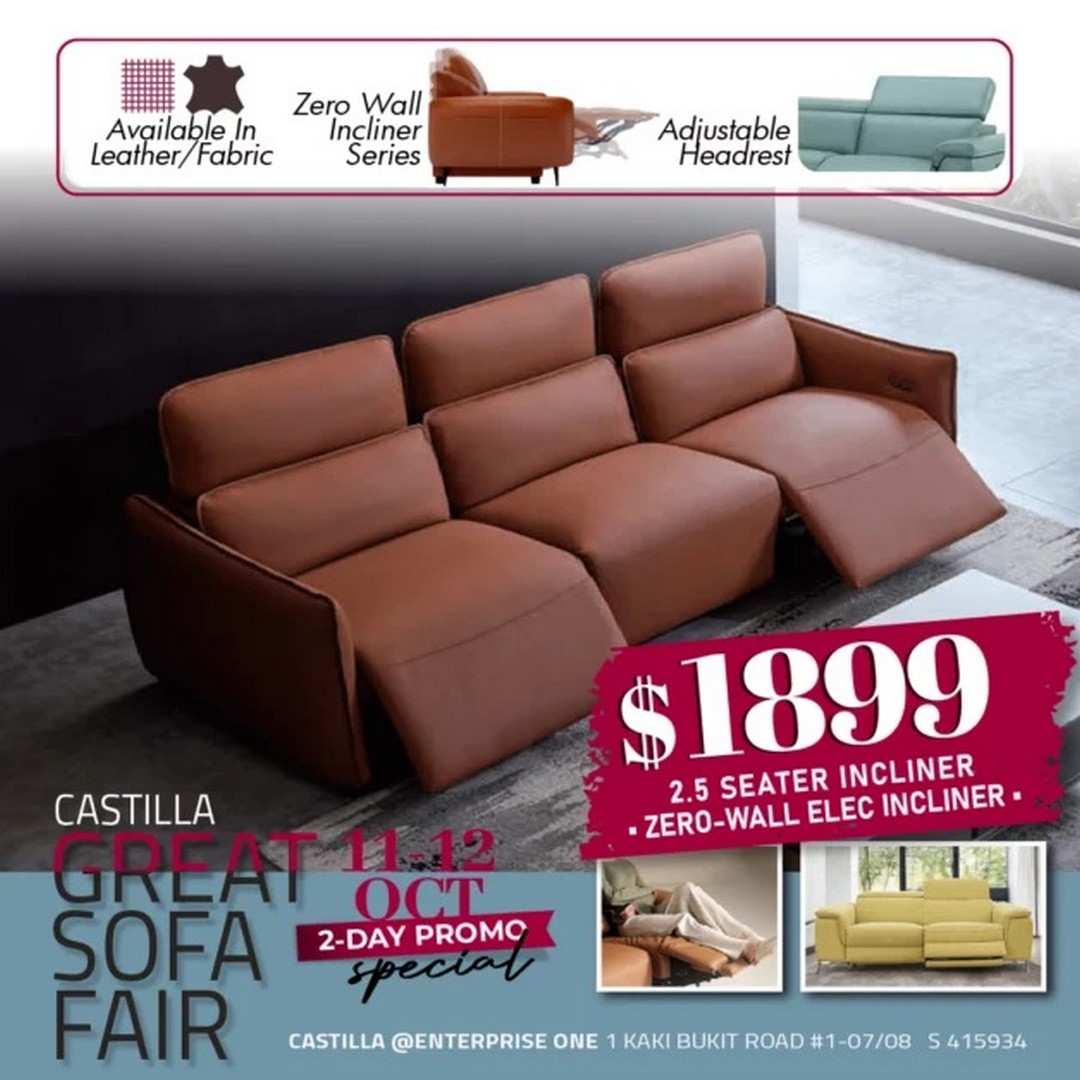 The fair will be hosted at Enterprise One, 1 Kaki Bukit Road #1-07/08, and runs from 10:00 AM to 7:00 PM on both days. Castilla has carefully curated a collection that caters to diverse tastes—from timeless leather pieces to modern modular designs, pet-friendly fabrics, and innovative recliner systems. With such a variety of options, there’s something for every home, whether it’s a cosy studio apartment or a spacious family living room.