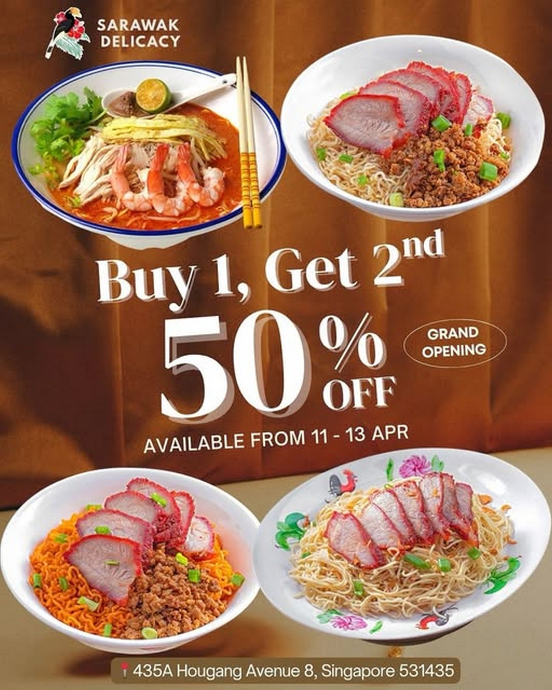 From 11 to 13 April 2026, diners can enjoy a Buy 1 main dish and get the second at 50% off deal, which applies to some of their signature dishes including Laksa, Kolomee, and Kampua. For anyone who has been craving a comforting bowl of Sarawak laksa or the simple yet satisfying kolo mee, this is a timely opportunity to try them at a more affordable price.