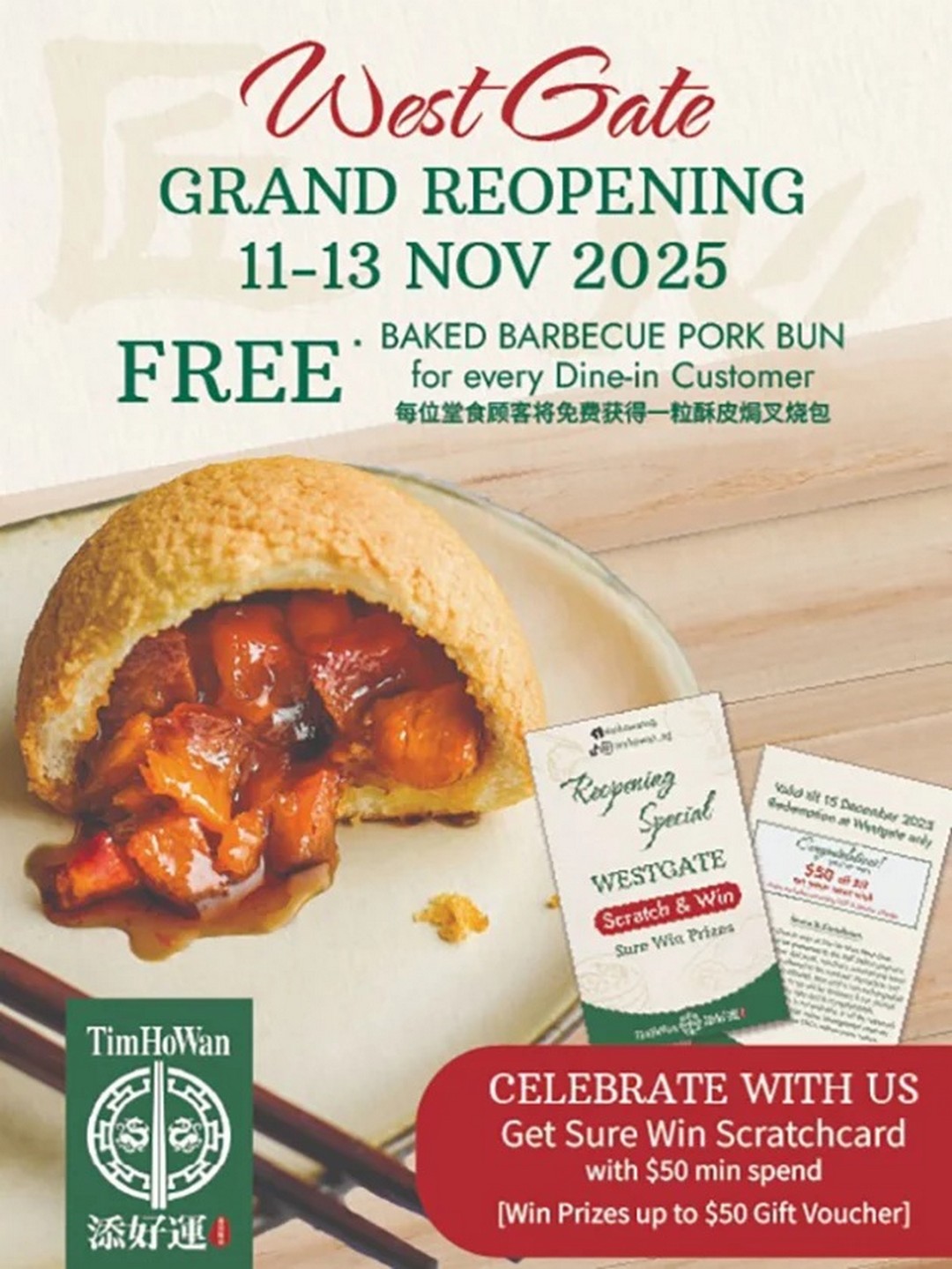 The complimentary Baked Barbecue Pork Bun is more than a small token — it’s a reminder of why this dish became a signature classic. Add in the Sure-Win Scratch Card, and you’re looking at a promotion where everyone walks away with something to smile about. -