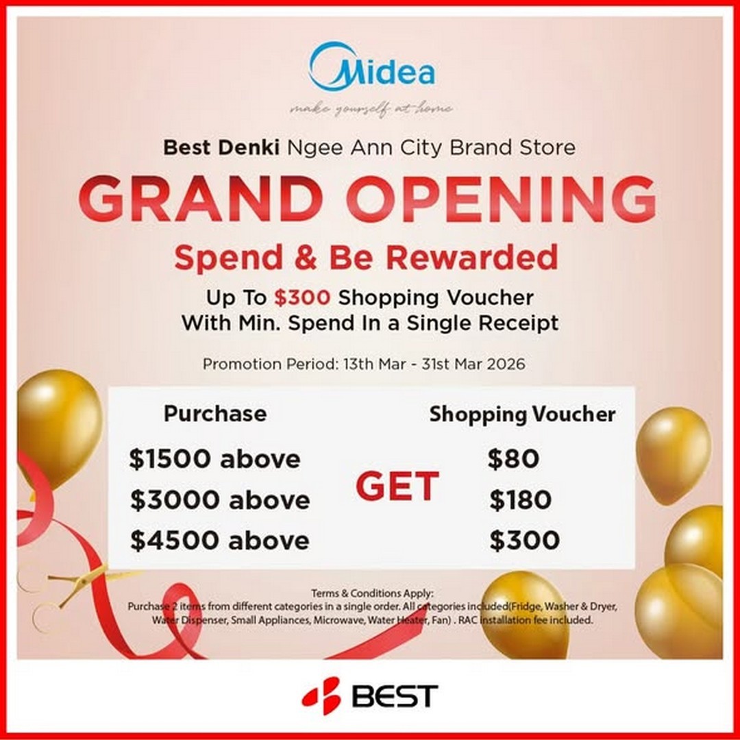 If you’ve been waiting for a reason to upgrade your home appliances or score some incredible bargains, there’s no better time than now. BEST Denki Singapore is rolling out an exciting Midea Grand Opening Promotion at their Ngee Ann City store, and it’s packed with irresistible deals that savvy shoppers won’t want to miss. Running now till 15 March 2026, this is your chance to enjoy top-notch appliances at unbeatable prices and earn rewards while you shop.