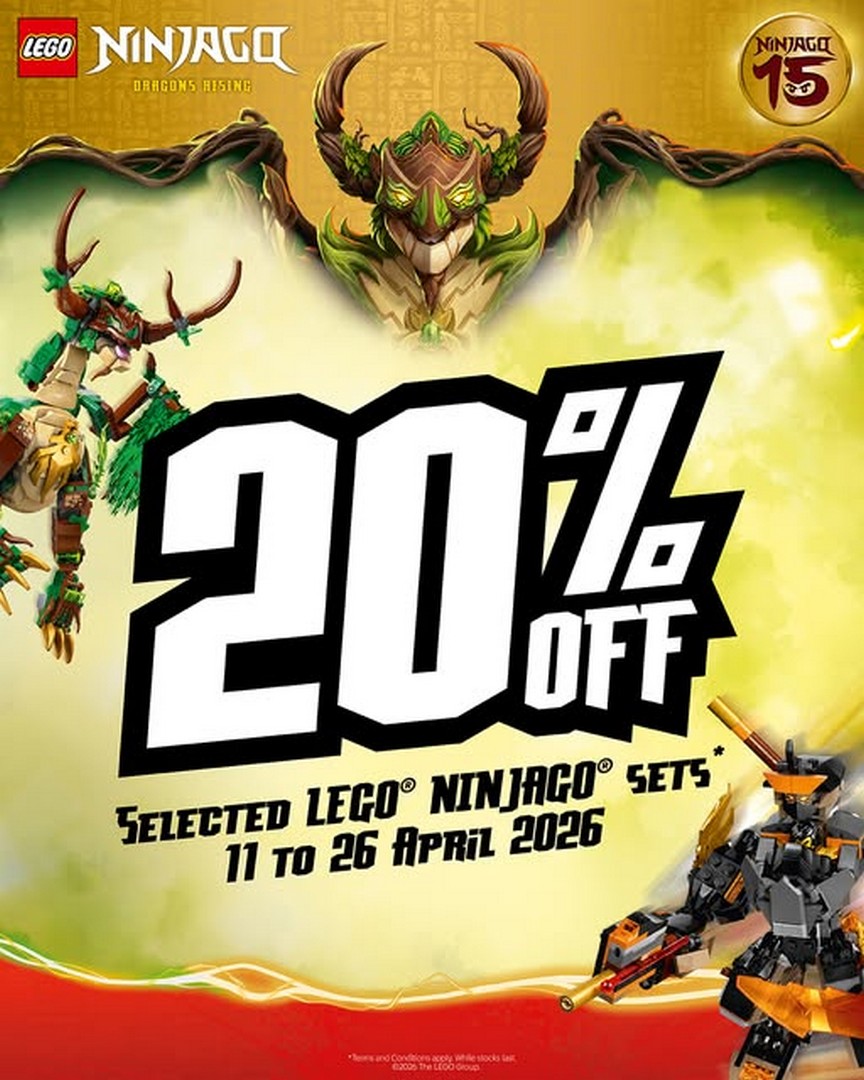 If there is ever a good excuse to revisit childhood memories or introduce the next generation to the joy of building, this latest promotion from Toys”R”Us Singapore might just be it. Running from 11 to 26 April 2026, shoppers can enjoy 20% off selected LEGO NINJAGO sets, making it an excellent opportunity to grab something fun, meaningful, and surprisingly educational at the same time.