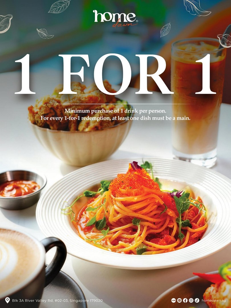 At the heart of this offer is Home Dawn Cafe @ Clarke Quay, a cosy café tucked within the lively Clarke Quay area. Known for its relaxed brunch setting and easygoing atmosphere, this café is currently running a 1-for-1 drink deal that makes it a surprisingly attractive stop for anyone planning a mid-day café hop or a casual brunch outing.