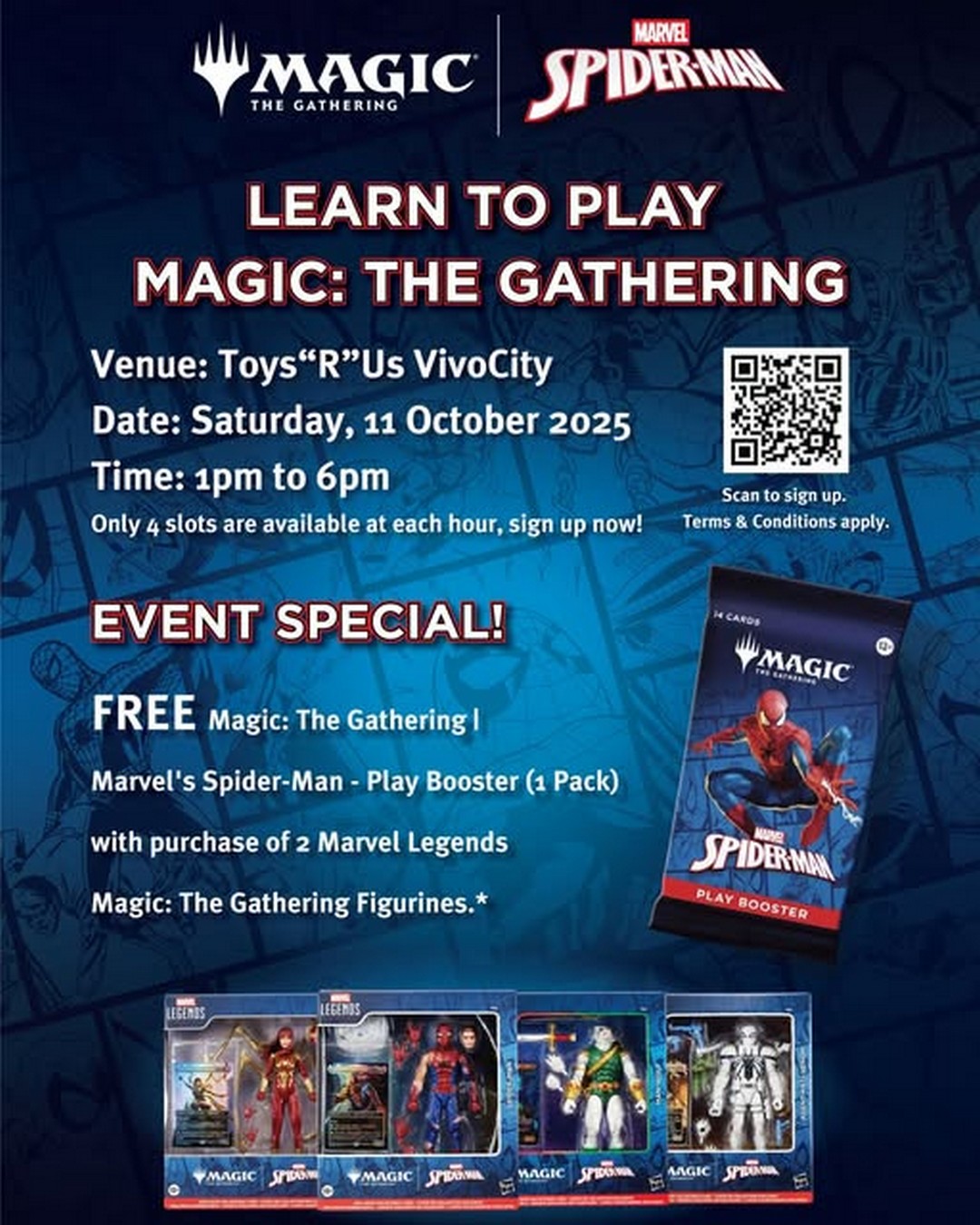 Spider-Man is swinging into an entirely new universe, and this time, it’s through the world of Magic: The Gathering (MTG)! Hasbro Singapore has teamed up with Toys”R”Us at VivoCity to offer an exciting opportunity for both Marvel fans and those curious about one of the world’s most celebrated strategy card games. Whether someone has never played MTG before or is a casual player looking for a fun twist, this event promises something special for everyone.