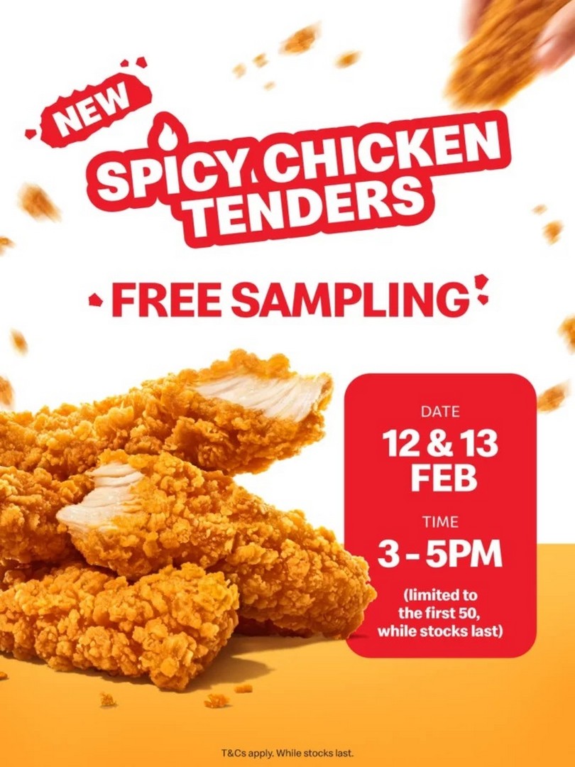 On 12 and 13 February 2026, from 3pm to 5pm, participating McDonald’s restaurants across Singapore will be giving out complimentary portions of the new Spicy Chicken Tenders to the first 50 customers during the sampling window. That means each outlet has limited quantities set aside specifically for this promotion.