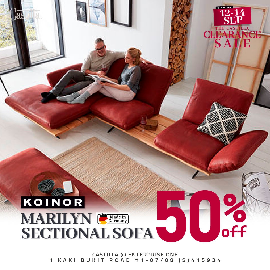 But why stop at the bedroom? Living rooms are about to get a major upgrade too. Solid leather sofas are now starting from only $999, offering both durability and comfort in designs that seamlessly fit into modern homes. For families or those who love to host, corner leather sets are available from $2,299 — perfect for sprawling out with a book, binge-watching a series, or enjoying a cosy evening with loved ones. And for anyone with a taste for something truly special, the Koinor Marilyn sectional sofa, imported from Germany, is now an astonishing 50% off. Deals like these are rare in Singapore, especially on high-end furniture that normally carries a premium price tag.