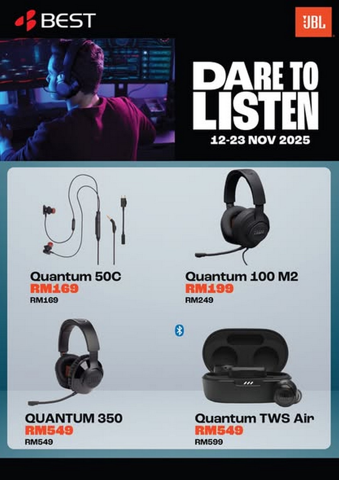 To sum up, the BEST DENKI JBL promotion is more than just a sale; it’s an opportunity for audiophiles, gamers, and casual listeners alike to upgrade their sound experience. With the variety of series available—Quantum for gaming, Tour & Live for premium performance, and Tune & Wave for everyday convenience—there’s truly something for everyone. And with the promotion running from 12 to 23 November 2025, there’s ample time to explore, compare, and select the perfect device.