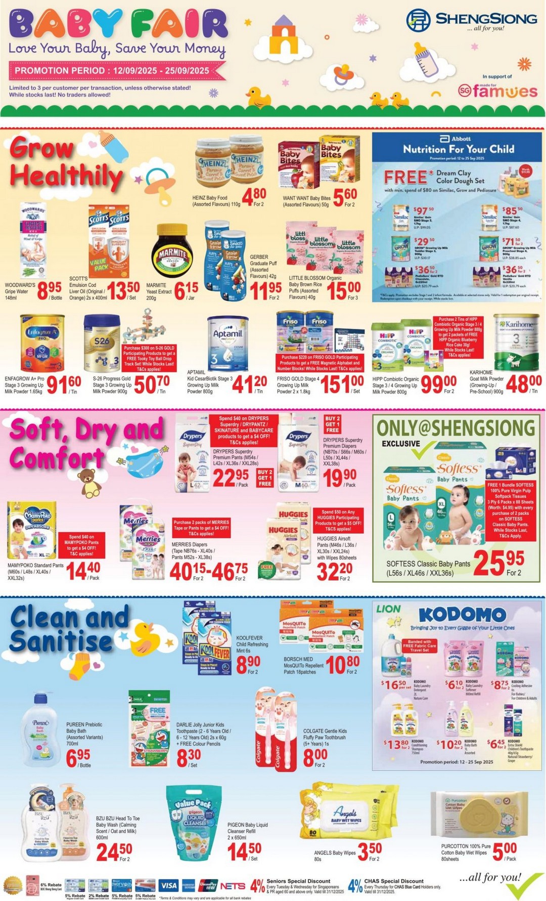 Participating in the Baby Fair is simple. Shoppers just need to visit Sheng Siong outlets during the promotion period. Be aware that purchases are generally limited to 3 items per customer per transaction, unless otherwise stated. This policy helps ensure that more families can benefit from the discounted prices and exclusive deals, without the worry of products selling out too quickly.