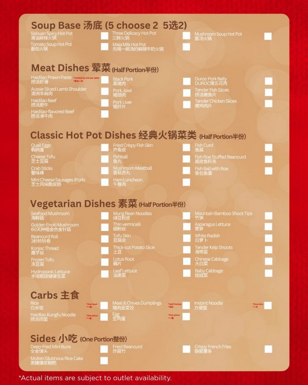Haidilao has truly upgraded their menu, making this not just a meal but an experience. Diners can now pick from an even wider selection of soup bases, order unlimited half-portions of various meats and sides, and fully customise their hot pot adventure. Whether you’re a die-hard fan of Sichuan spice or someone who prefers milder, savoury flavours, this promotion has something to satisfy every palate.