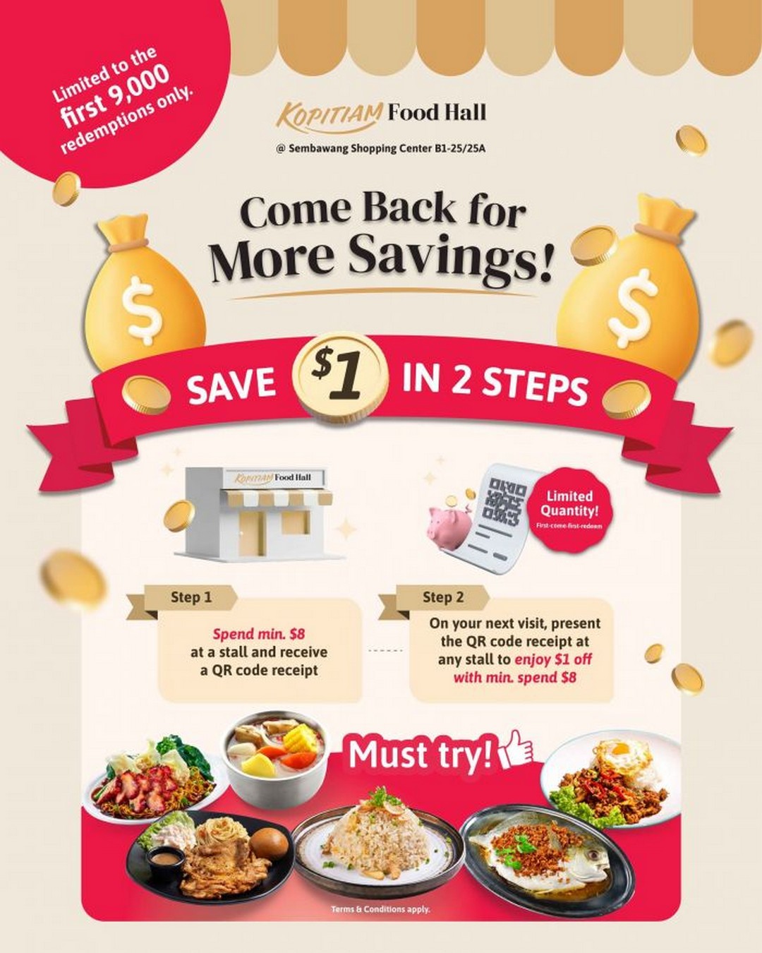 In short, the Kopitiam Food Hall @ Sembawang Shopping Centre Save $1 Promotion is a simple, honest deal that rewards loyalty and encourages people to enjoy their meals with a little extra satisfaction. Whether it is a quick lunch, a casual dinner, or a family meal, this promotion adds value without complications. For those in the area, it is definitely worth dropping by, enjoying a meal, and keeping that QR code receipt for the next visit.