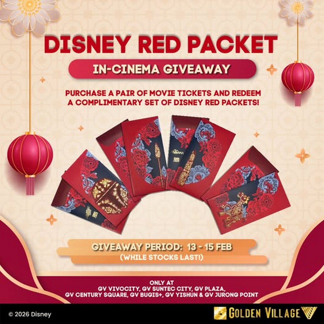 Celebrate this Chinese New Year with a sprinkle of Disney magic courtesy of Golden Village! For movie lovers looking to kick off the festive season in style, GV is offering an exclusive promotion that adds a little extra joy to your cinema experience. From 13th to 15th February 2026, anyone purchasing a pair of movie tickets at selected Golden Village cinemas will receive a complimentary set of Disney-themed red packets.