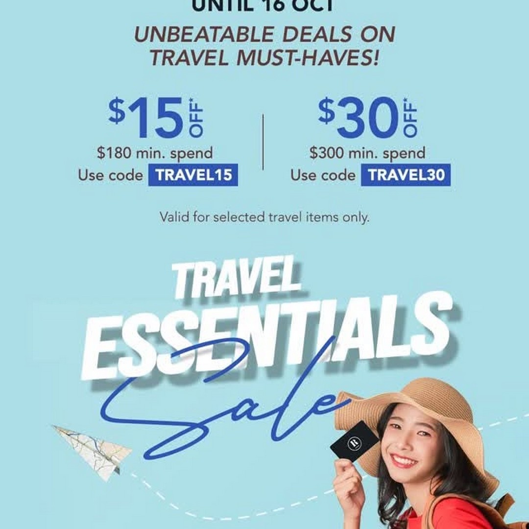 Promotion: $15 OFF with $180 min. spend (Use code: TRAVEL15), $30 OFF with $300 min. spend (Use code: TRAVEL30)