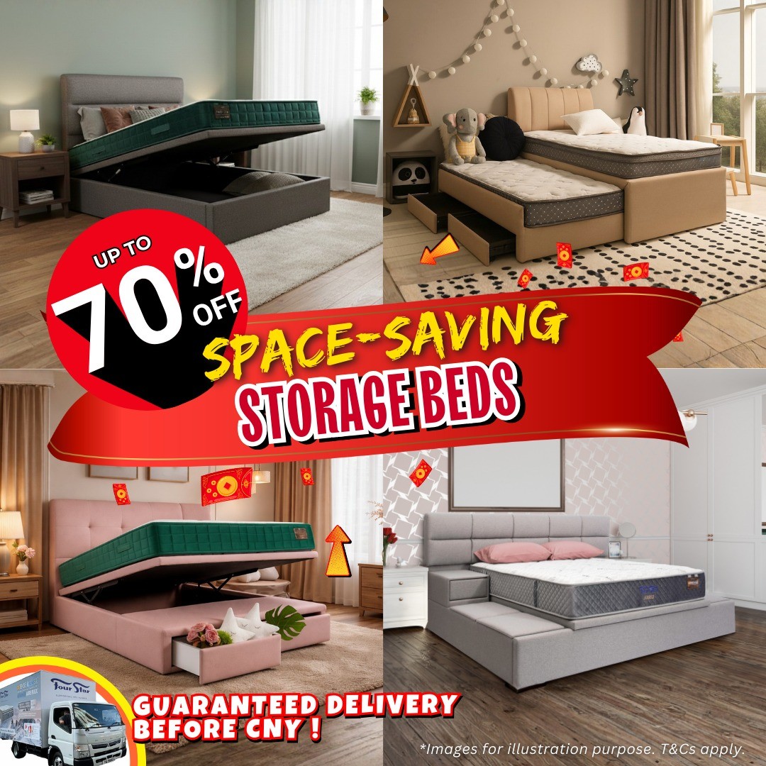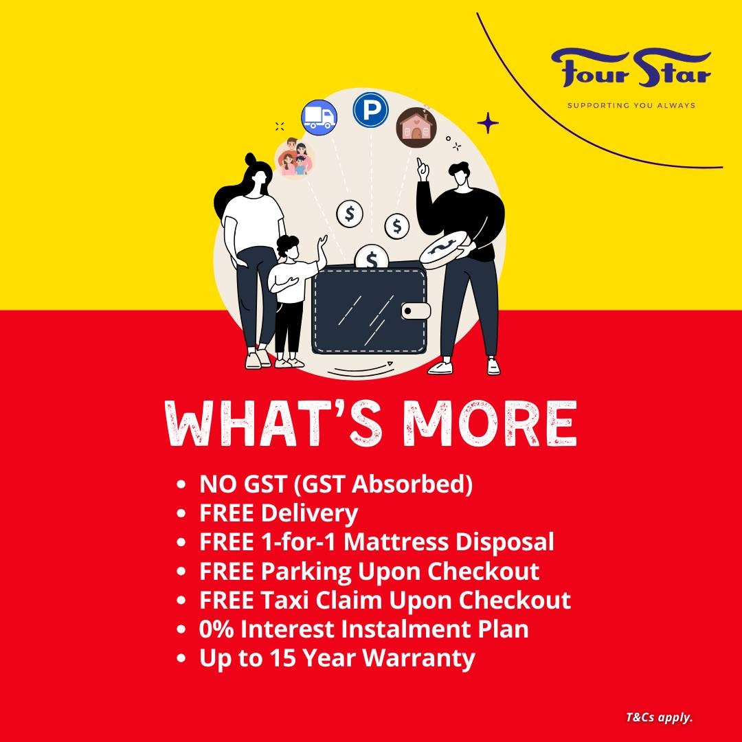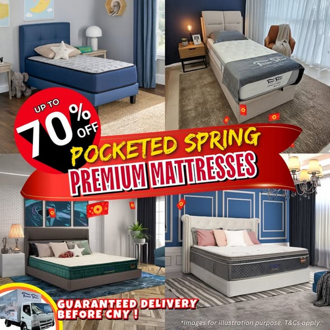 Four Star Mattress is a well-established name in Singapore, known for offering a wide range of mattresses, bedframes, and home furniture that cater to different sleep preferences and budgets. During this limited-time Chinese New Year sale, they are offering discounts of up to 70% on selected mattresses and bedframes, as well as generous savings on sofas, armchairs, and recliners. On top of that, shoppers can look forward to free gifts, cashback, and guaranteed delivery before Chinese New Year, which is a major plus when time is tight.