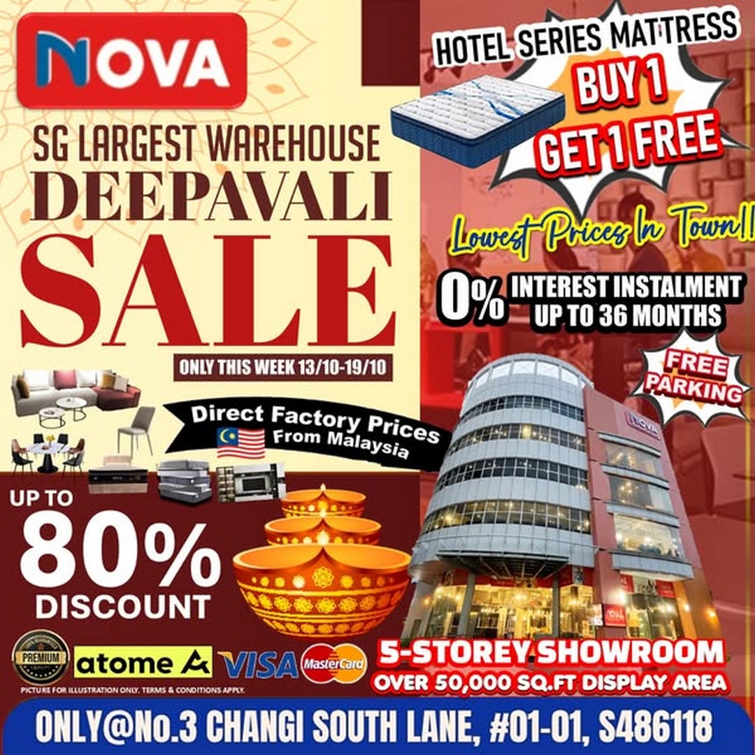 Whether looking for a cosy leather recliner, a functional modular sofa, or a complete bedroom set, Nova Furnishing provides the perfect combination of choice, value, and quality. By attending this sale, shoppers can transform their homes in time for Deepavali festivities and enjoy furniture that brings both style and comfort into their living spaces.