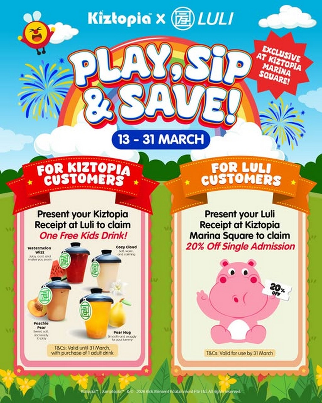 To make the experience even more enjoyable this March, Kiztopia has teamed up with Luli Kids to introduce a playful “Play, Sip & Save” promotion.