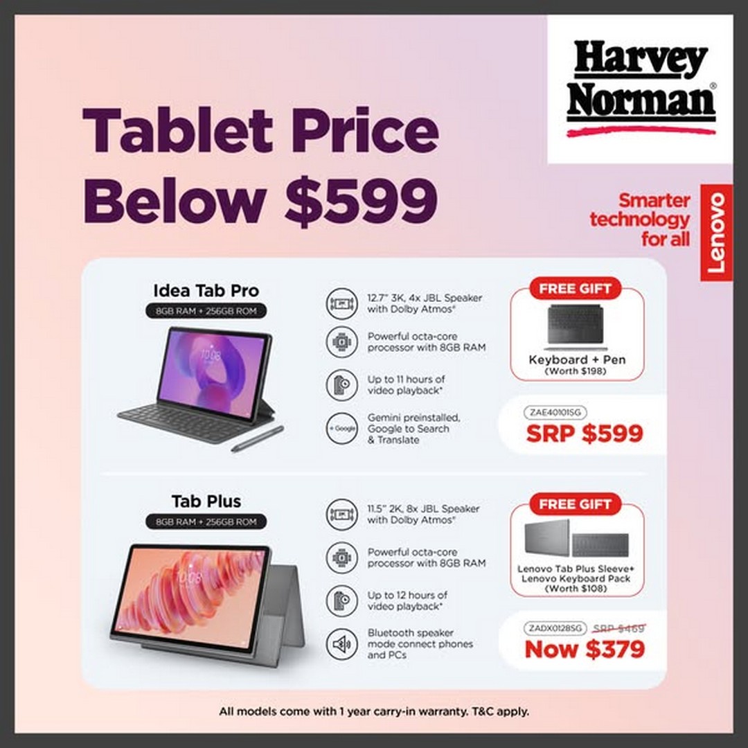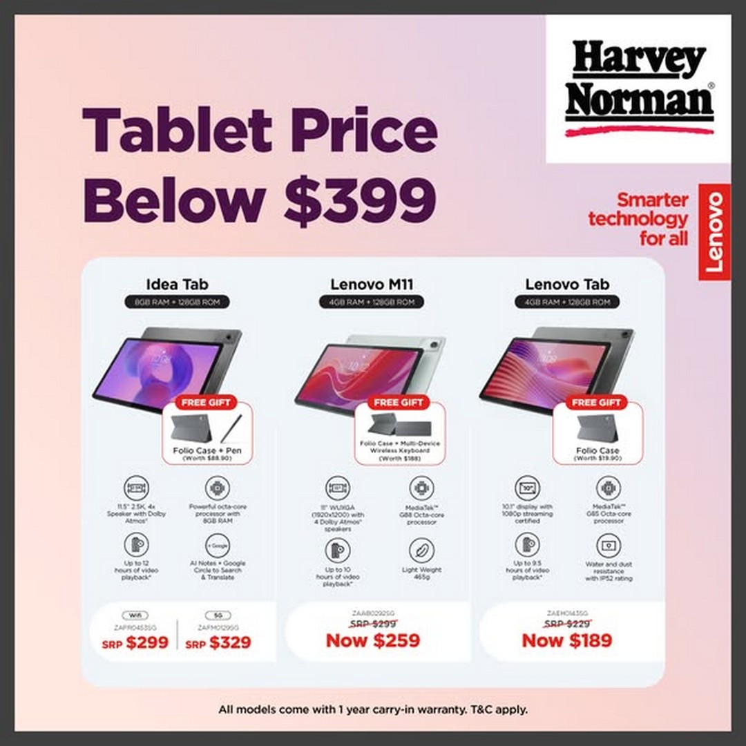 Finally, Harvey Norman makes it easy to grab these deals without needing to leave your home. Their online store provides detailed product descriptions, images, and links to accessories, so you can shop confidently. Simply visit their online store here: https://bit.ly/4o7fKj0 or head to a nearby Harvey Norman store: https://bit.ly/35dxOFG to experience the devices firsthand. The combination of clearance prices, free accessories, and the quality of Lenovo products makes this promotion a must-watch for anyone in Singapore looking to invest in a tablet.