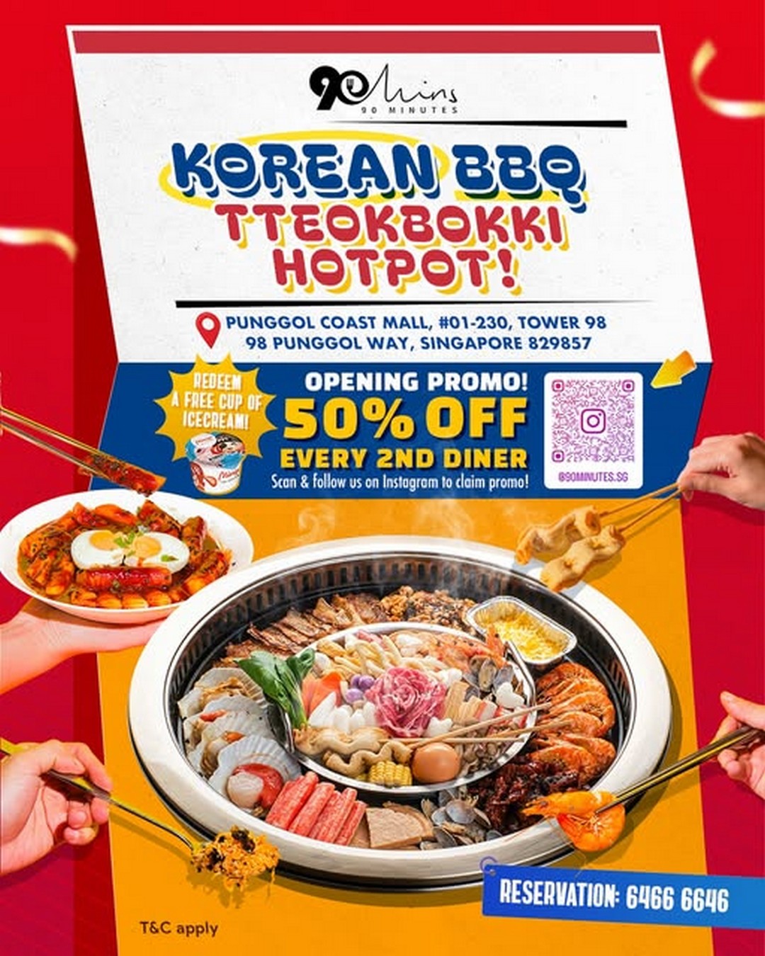 Don’t miss out on this opportunity to be part of 90 Minutes’ opening celebrations. Gather a friend or family member, head over to Punggol Coast Mall, and indulge in a Korean dining experience that promises taste, value, and enjoyment. With every second diner at half price, it’s an offer that Singaporeans will want to savour again and again.