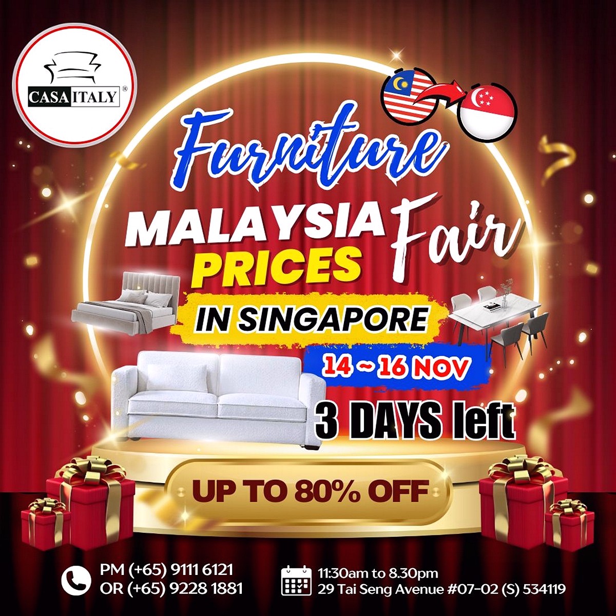 The Furniture Malaysia Prices Fair by CASA ITALY is one of those events that reminds Singaporeans it’s still possible to get a good deal without crossing the border. If you’ve been holding off that home makeover because everything here “too expensive lah,” now’s your chance to turn your place into a Pinterest-worthy home at a fraction of the usual price.