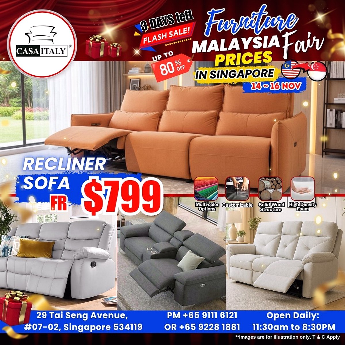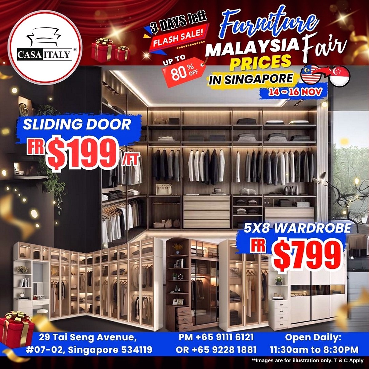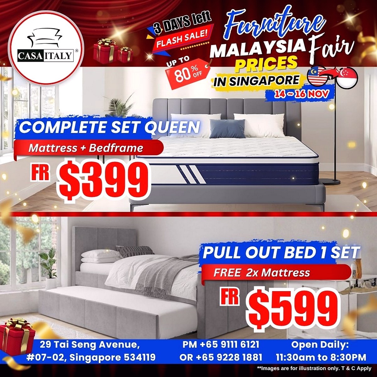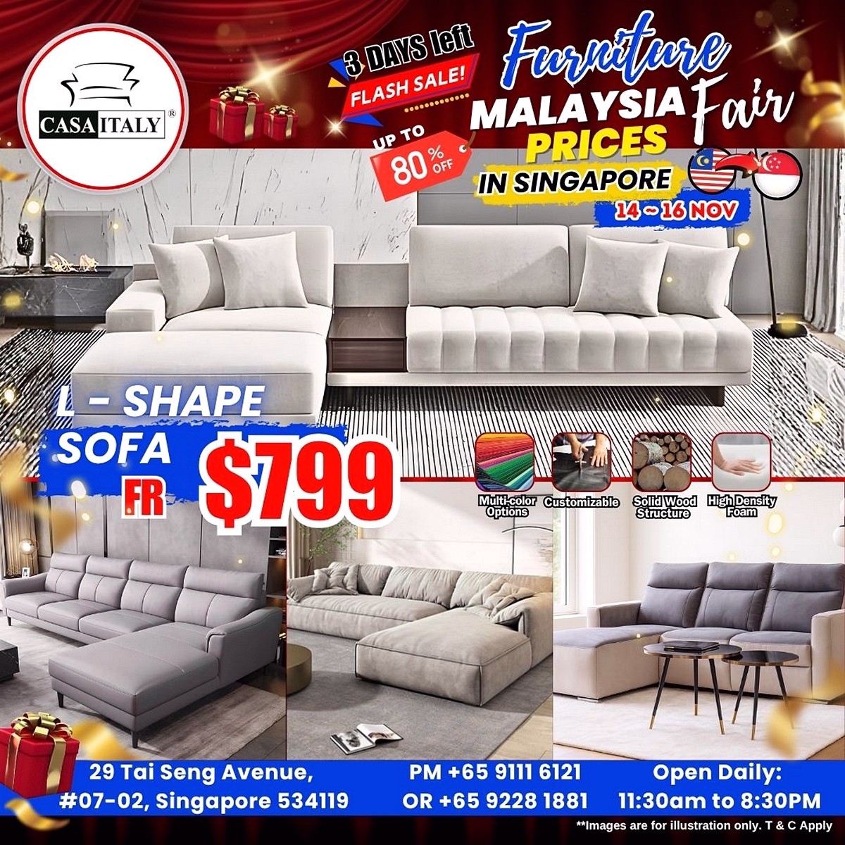 If that sounds familiar, I’ve got good news for you. CASA ITALY just saved your weekend — and your petrol money — by bringing Malaysia furniture prices straight to Singapore! From 14 to 16 November 2025, they’re holding the Furniture Malaysia Prices Fair right here at 29 Tai Seng Avenue, just a short 3-minute walk from Tai Seng MRT Exit C. No tolls, no passport stamping, no “abang please open the boot” moment.
