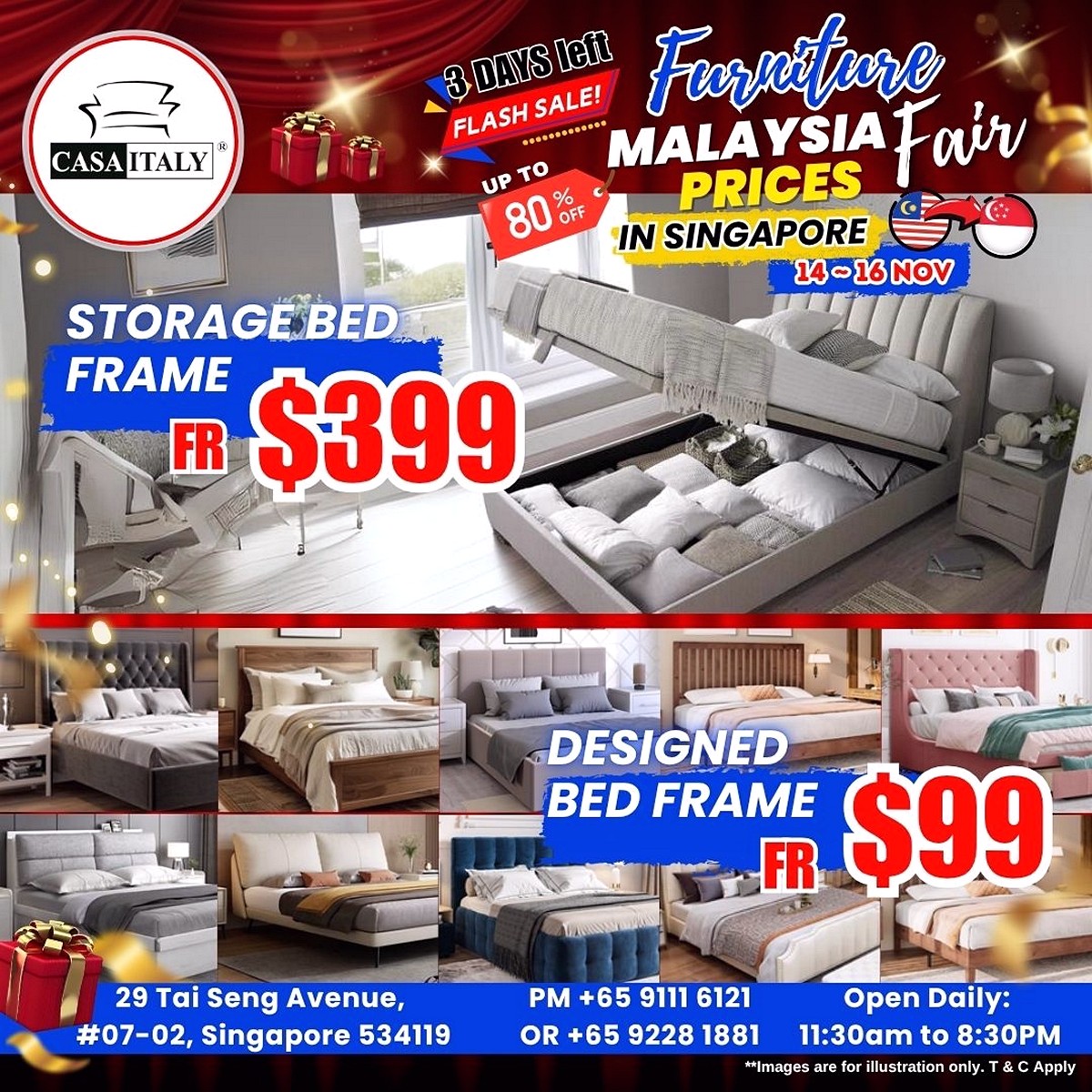 For the more practical ones who like extra storage, they’ve got Storage Bed Frames from $399, Pull-Out Bed Sets from $599 (with FREE 2-in-1 mattress), and Designer Bed Frames from just $99 — which, honestly, is cheaper than what some people spend on brunch.