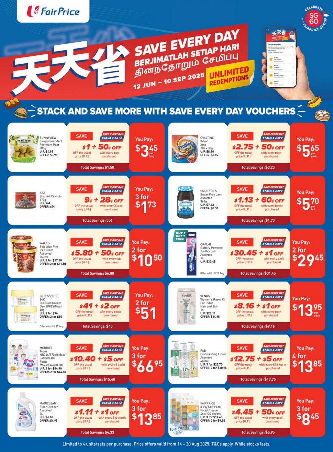In summary, NTUC FairPrice’s Save Every Day Voucher Promotion from 14 to 20 August 2025 is a week-long opportunity that savvy shoppers cannot afford to miss. With impressive savings, unlimited voucher redemptions, and a wide selection of products spanning groceries, household items, and personal care, it is perfectly tailored for those who want to make the most out of their shopping trips. This promotion embodies smart shopping, convenience, and tangible value – making it an ideal event to plan for, enjoy, and benefit from fully.