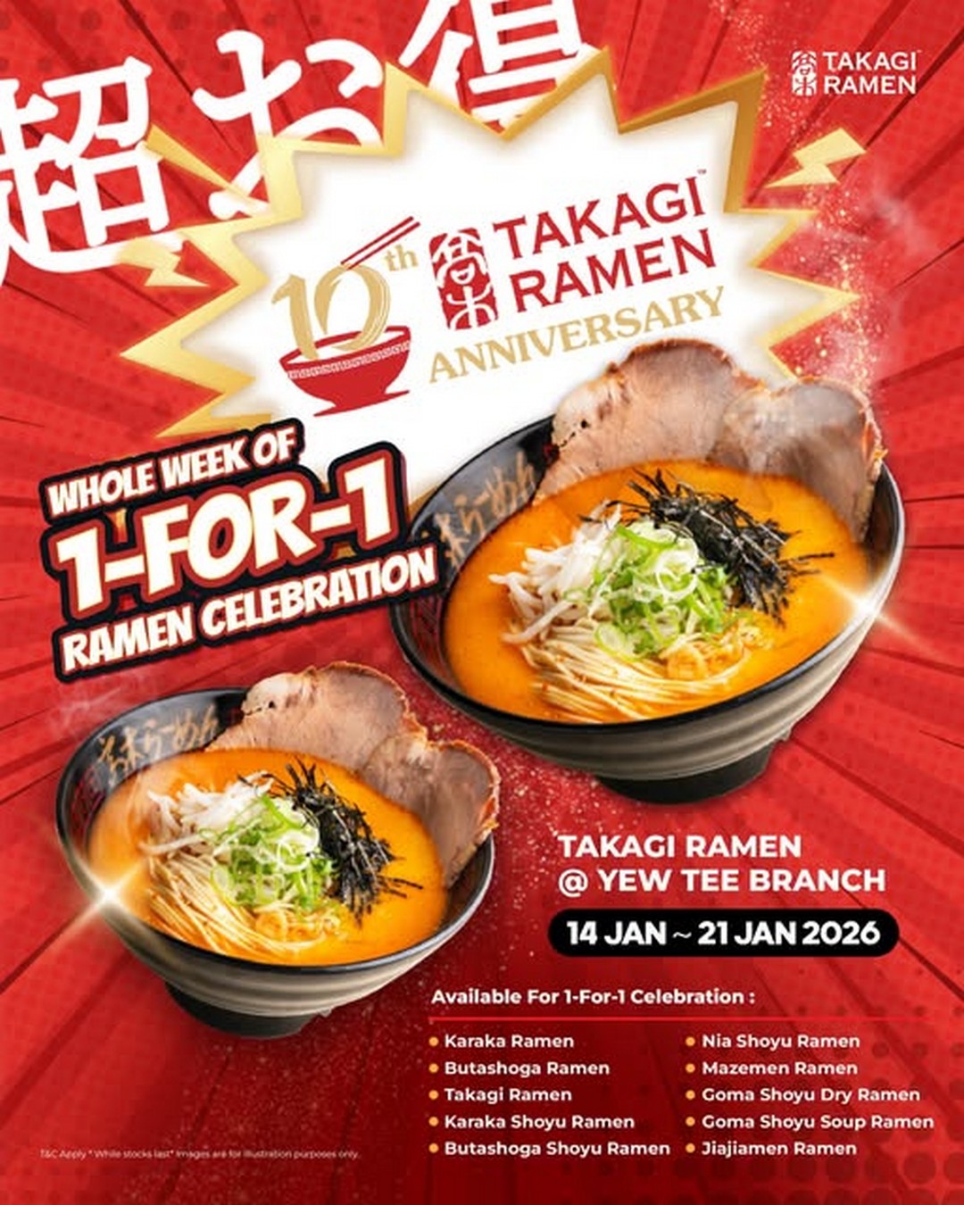 In conclusion, Takagi Ramen’s 10th Anniversary 1-for-1 Ramen Celebration is more than just a promotion—it’s a celebration of a decade of passion, flavour, and dedication to bringing people together over great food. With a week-long offer, accessible location, and the opportunity to try premium ramen at an exceptional value, this is an event no ramen lover should miss. Mark your calendars for 14th to 21st January 2026 and make your way to Yew Tee Point to join in this exciting celebration. Whether you’re a longtime fan or new to Takagi Ramen, there’s no better time to indulge, share, and savour every bite.